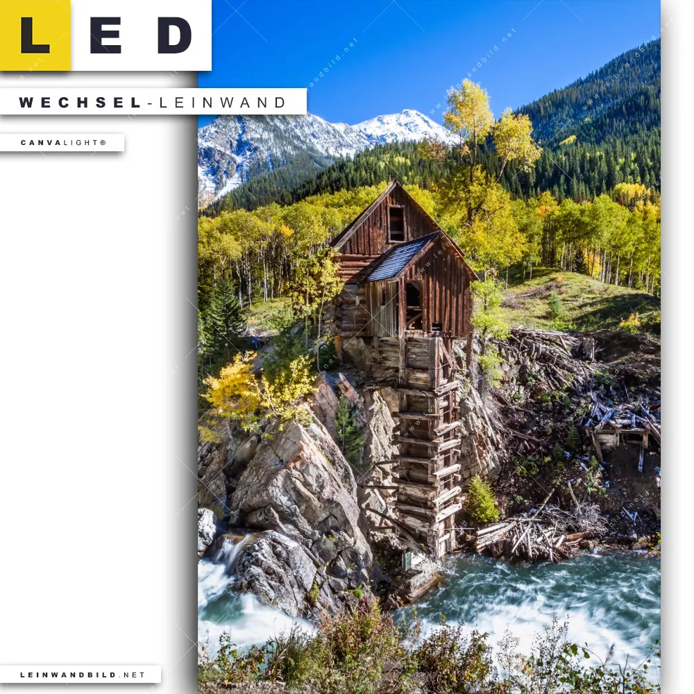 Dann sollte die Wechsel-Leinwand Canvalight® TEX | Waldhütte am Fluss | Hochformat den Weg zu Dir finden. Die Austausch-Leinwand Abandon Kristallfabrik in den Bergen - passend für unsere stufenlos dimmbaren, steckerfertigen Leinwandbilder im Leuchtrahmen mit Fernbedienung und optionaler Farbtemperatursteuerung - fügt sich als Eye-Catcher harmonisch in jedes Arzt - Praxis, Büro - Kanzlei, Flur - Eingangsbereich, Wohnzimmer - Schlafzimmer Raumkonzept ein.
