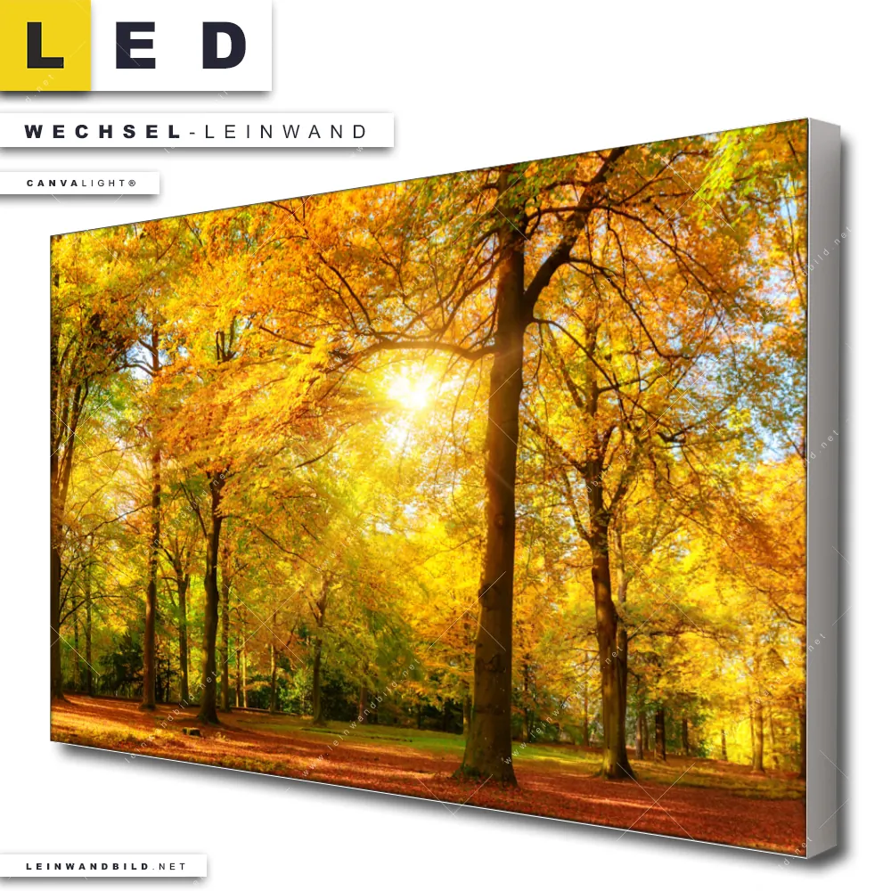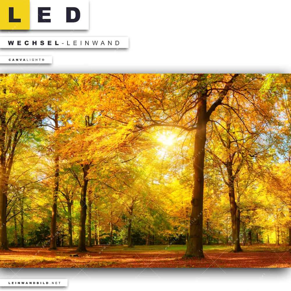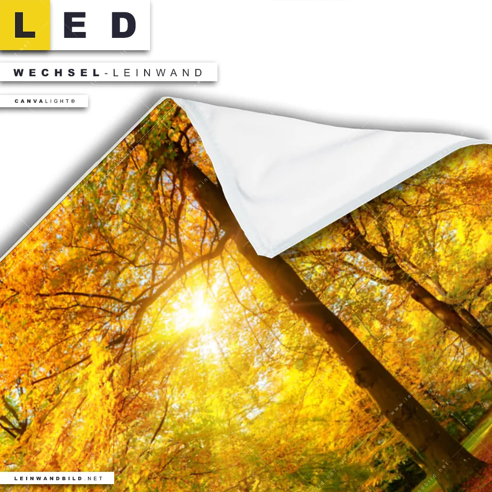 LED Wechsel-Leinwand Canvalight® TEX | Waldlandschaft im Herbst | Querformat