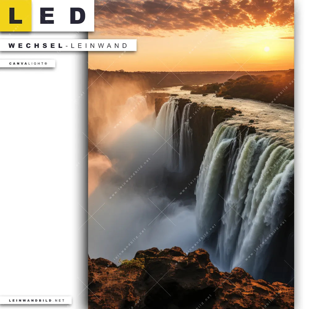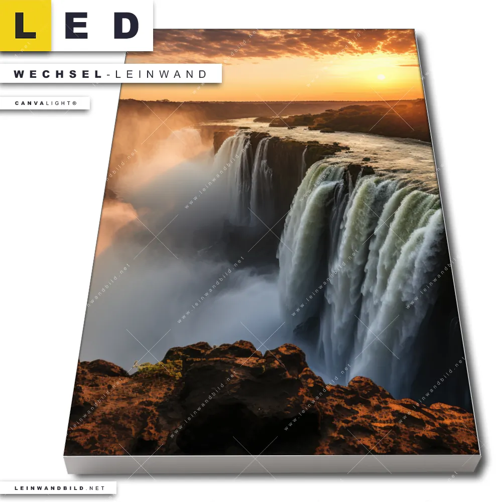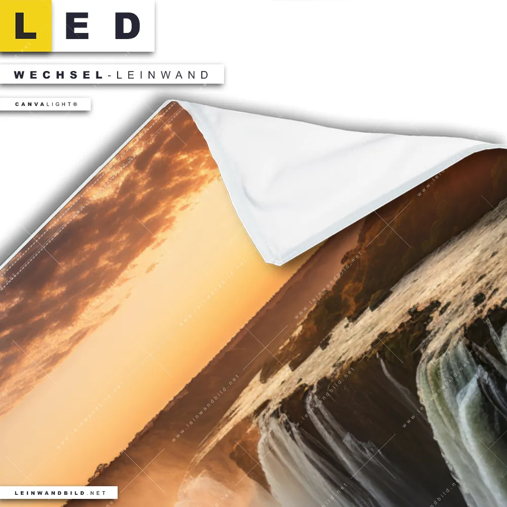LED Wechsel-Leinwand Canvalight® TEX | Wasserfall bei Abendsonne | Hochformat