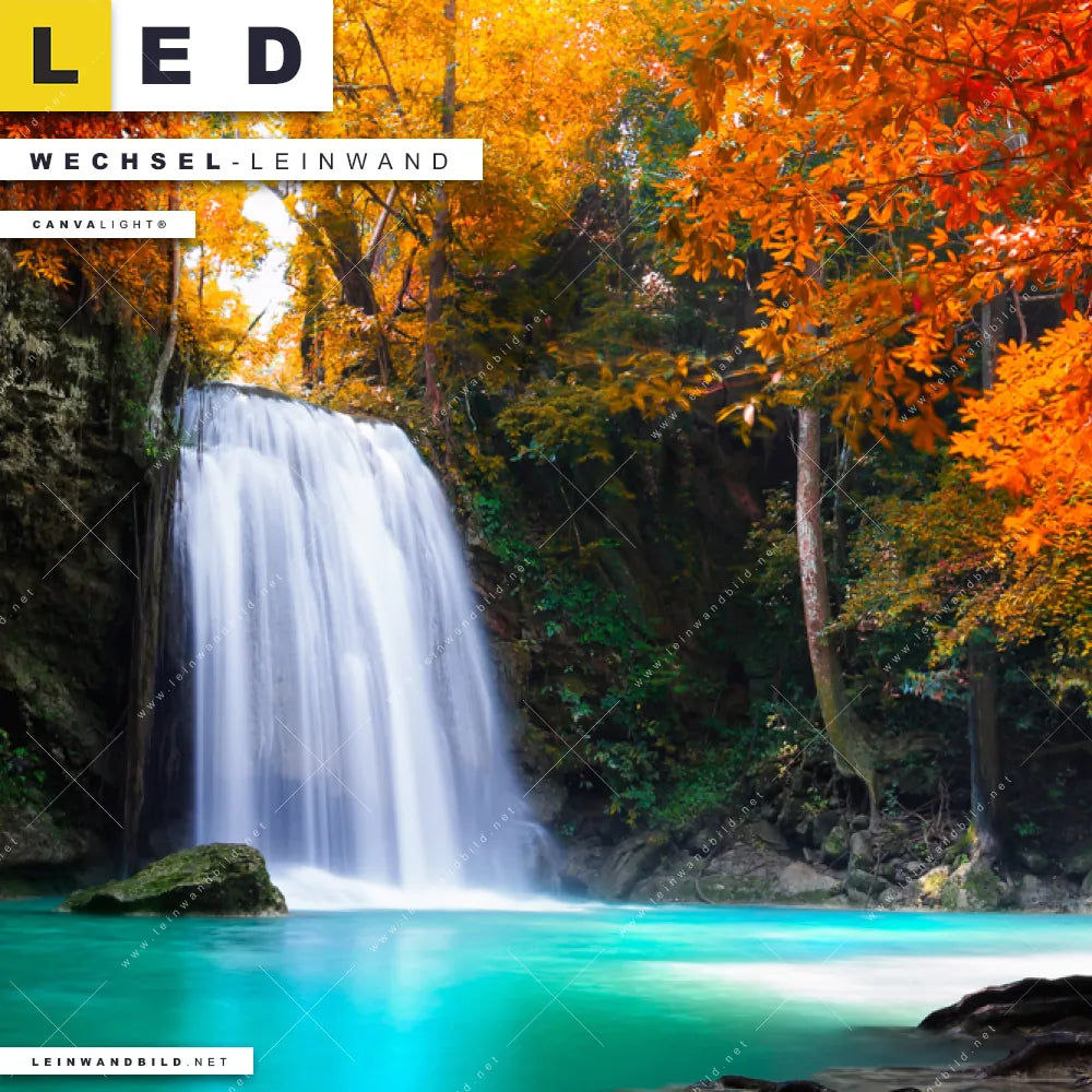 Du bist auf der Suche nach einer Landschaften, Wald - Bäume Wechsel-Leinwand für Dein LED-Leinwandbild im Hochformat? Begriffe wie Wasserfall, Landschaft, Natur, Herbst, Wald haben Dich auf der Suche nach Deiner Ersatz-Leinwand für dein LED Wandbild mit wechselbarer Leinwand inspiriert? Farben wie Rot, Orange, Türkis, Braun dürfen auf Deinem neuen Wechselmotiv für Dein XXL Leinwand-LED-Bild nicht fehlen und Leinwände im Natürlich - Realistisch Stil für Leuchtbilder passen perfekt zu Deinem Einrichtungsstil?