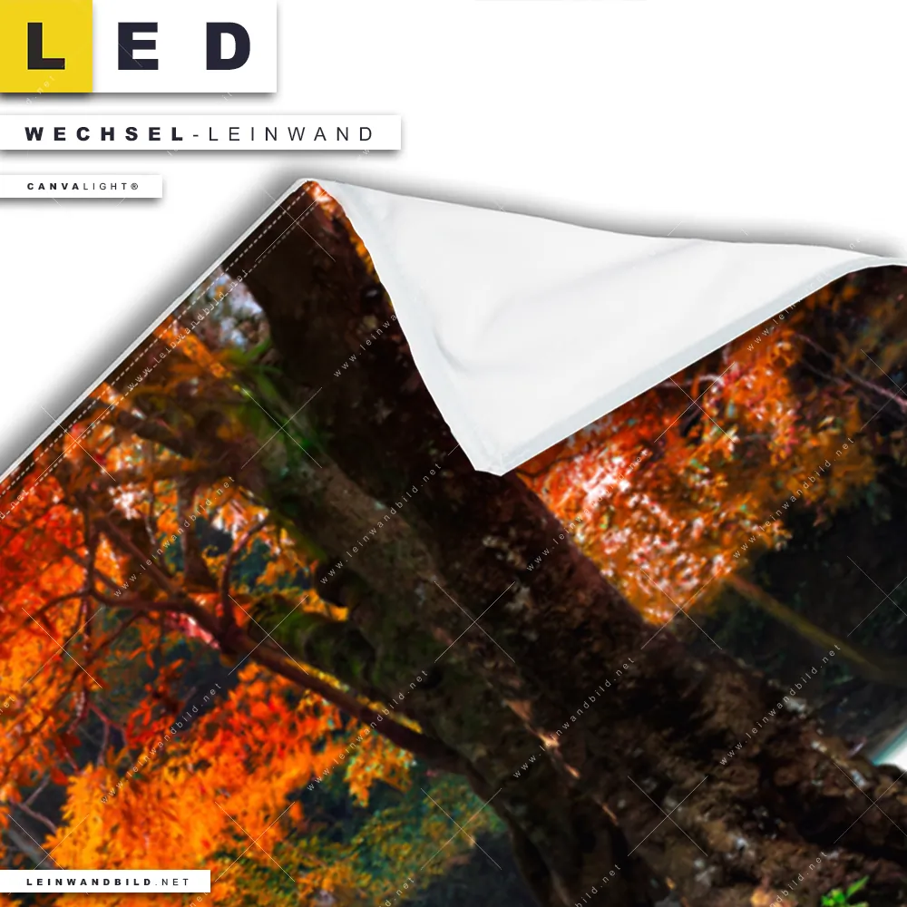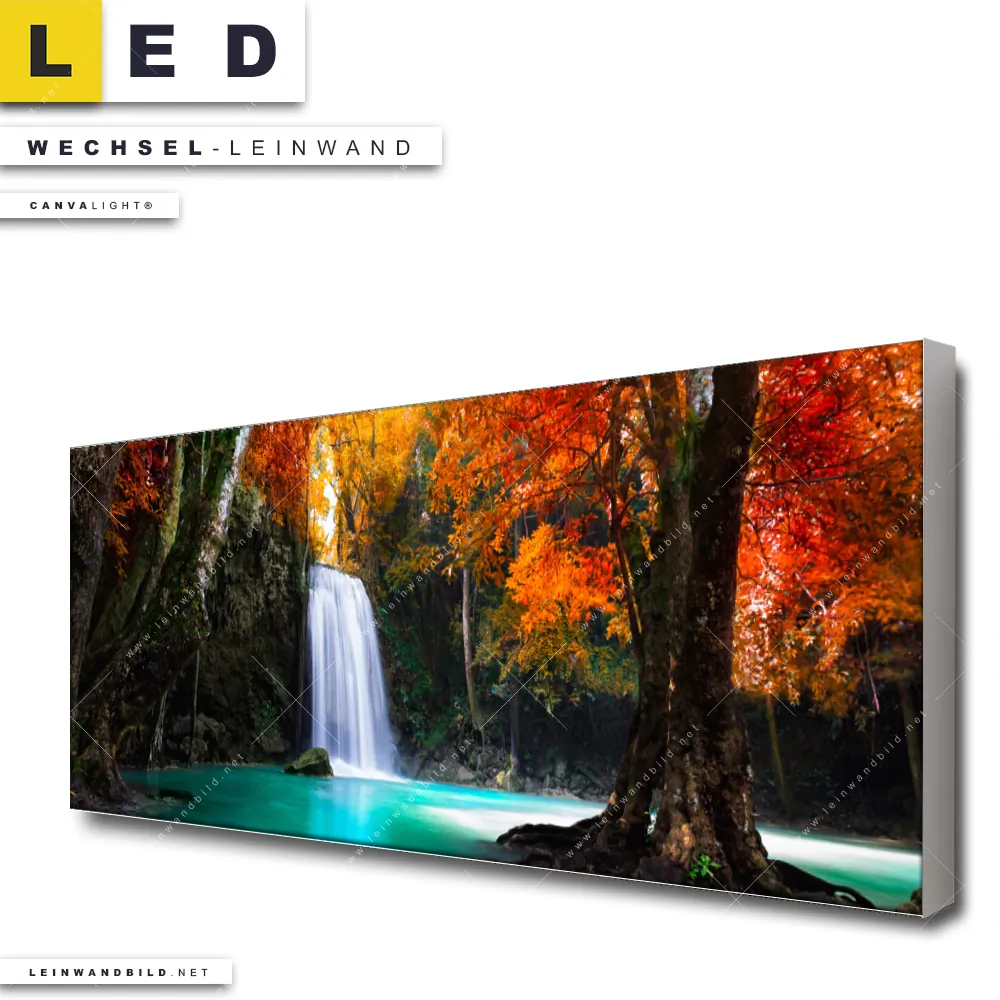 Du bist auf der Suche nach einer Landschaften, Wald - Bäume Wechsel-Leinwand für Dein LED-Leinwandbild im Panorama-Format? Begriffe wie Wasserfall, Landschaft, Natur, Herbst, Wald haben Dich auf der Suche nach Deiner Ersatz-Leinwand für dein extra breites LED Wandbild mit wechselbarer Leinwand inspiriert? Farben wie Rot, Orange, Türkis, Braun dürfen auf Deinem neuen Wechselmotiv für Dein XXL Leinwand-LED-Bild nicht fehlen und Leinwände im Natürlich - Realistisch Stil für Leuchtbilder passen perfekt zu Deinem Einrichtungsstil?