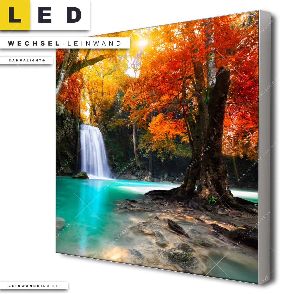 Du bist auf der Suche nach einer Landschaften, Wald - Bäume Wechsel-Leinwand für Dein LED-Leinwandbild im Quadratischen Format? Begriffe wie Wasserfall, Landschaft, Natur, Herbst, Wald haben Dich auf der Suche nach Deiner Ersatz-Leinwand für dein LED Wandbild mit wechselbarer Leinwand inspiriert? Farben wie Rot, Orange, Türkis, Braun dürfen auf Deinem neuen Wechselmotiv für Dein XXL Leinwand-LED-Bild nicht fehlen und Leinwände im Natürlich - Realistisch Stil für Leuchtbilder passen perfekt zu Deinem Einrichtungsstil?