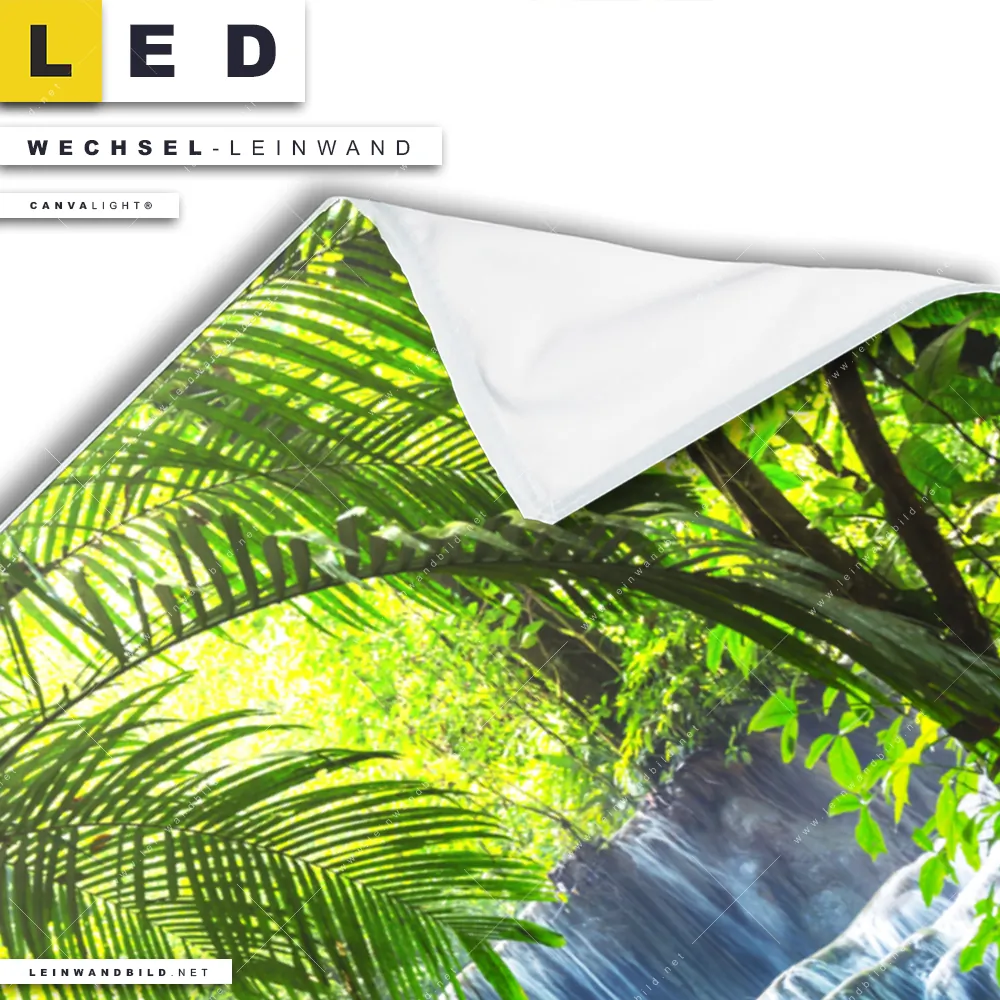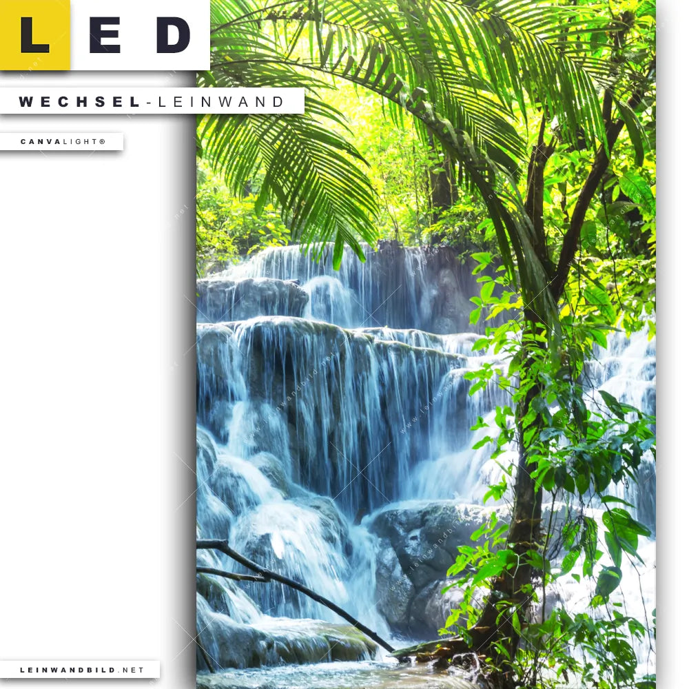 LED Wechsel-Leinwand Canvalight® TEX | Wasserfall in Mexiko | Hochformat