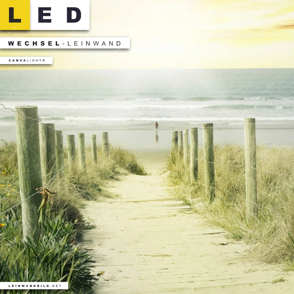 Du konfigurierst Deine individuelle LED Wechsel-Leinwand Canvalight® TEX | Weg zum Strand | Hochformat und wir produzieren sie NEU für Dich. Unsere Landschaften, Strand - Meer Austausch-Fotoleinwände für Canvalight® LED Bilder sind KEINE Lagerware. Du bist Dir unsicher, welches Motiv oder Format das richtige für dein individuelles LED Wechselmotiv auf Leinwand ist, dann helfen wir dir gerne weiter und beraten dich!