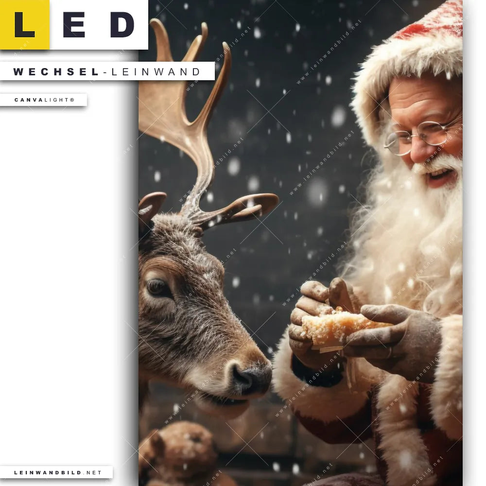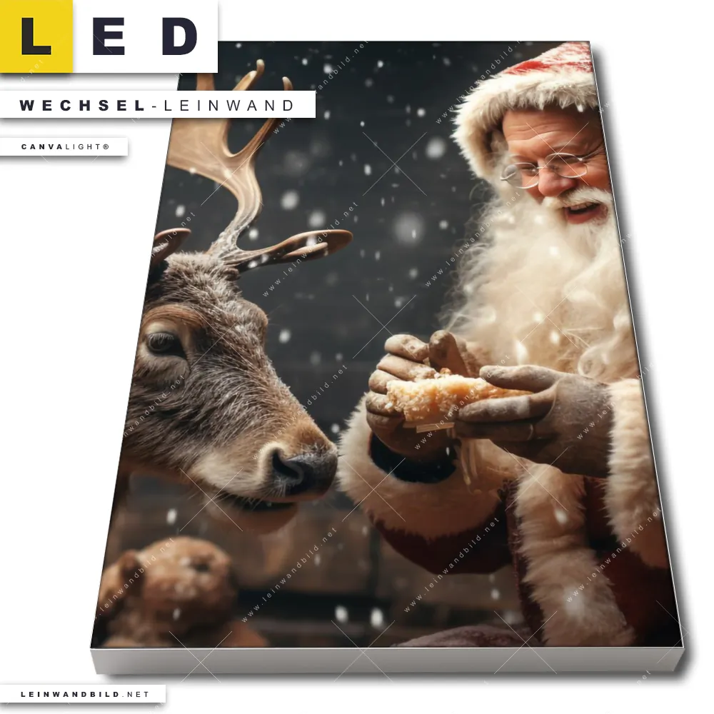 LED Wechsel-Leinwand Canvalight® TEX | Weihnachtsmann füttert Rentier | Hochformat