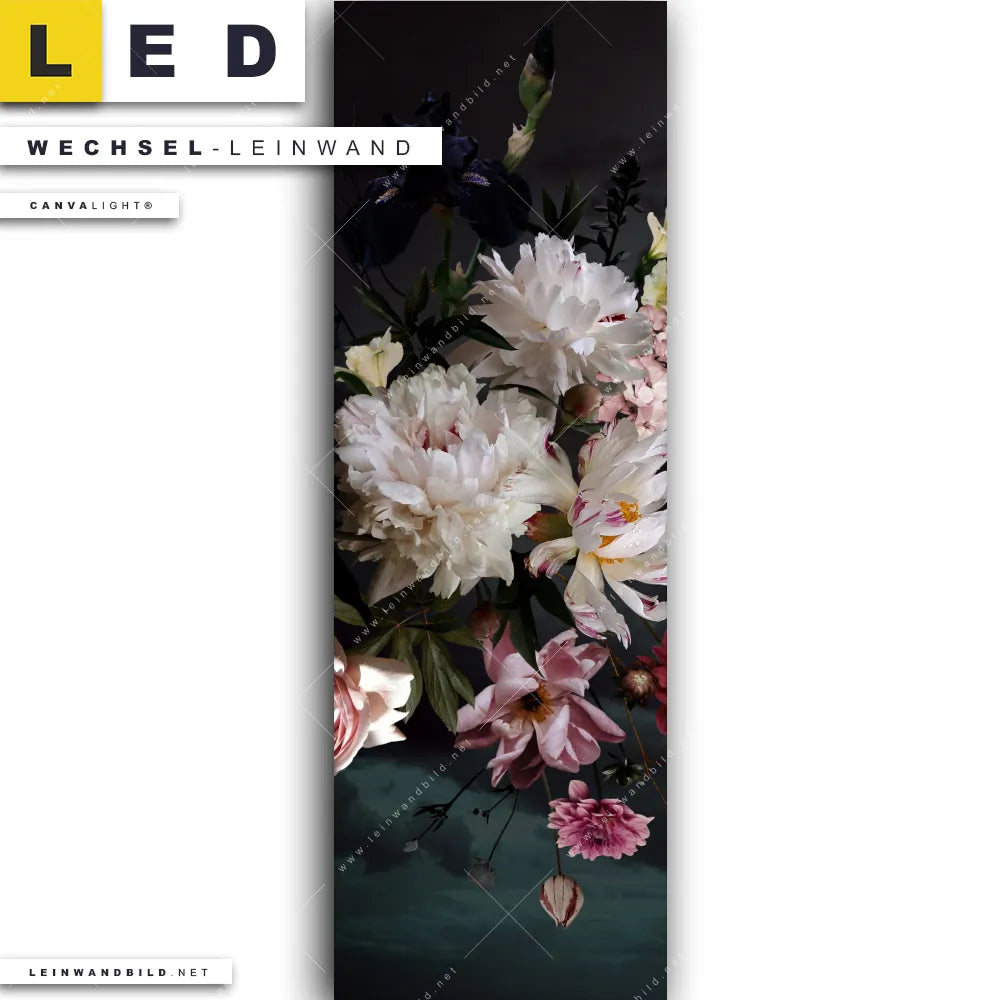 Du bist auf der Suche nach einer Blumen - Botanik Wechsel-Leinwand für Dein LED-Leinwandbild im Schmalen Format? Begriffe wie Pflanze, Natur, Blüte, Nahaufnahme, Draufsicht, vintage, Blumen, Rosen, Blüten haben Dich auf der Suche nach Deiner Ersatz-Leinwand für dein LED Wandbild im Panorama-Hochformat mit wechselbarer Leinwand inspiriert? Farben wie Schwarz, Weiss, Rot, Rosa, Blau, Lila dürfen auf Deinem neuen Wechselmotiv für Dein XXL Leinwand-LED-Bild nicht fehlen und Leinwände im Floral, Natürlich - Realistisch Stil für Leuchtbilder passen perfekt zu Deinem Einrichtungsstil?