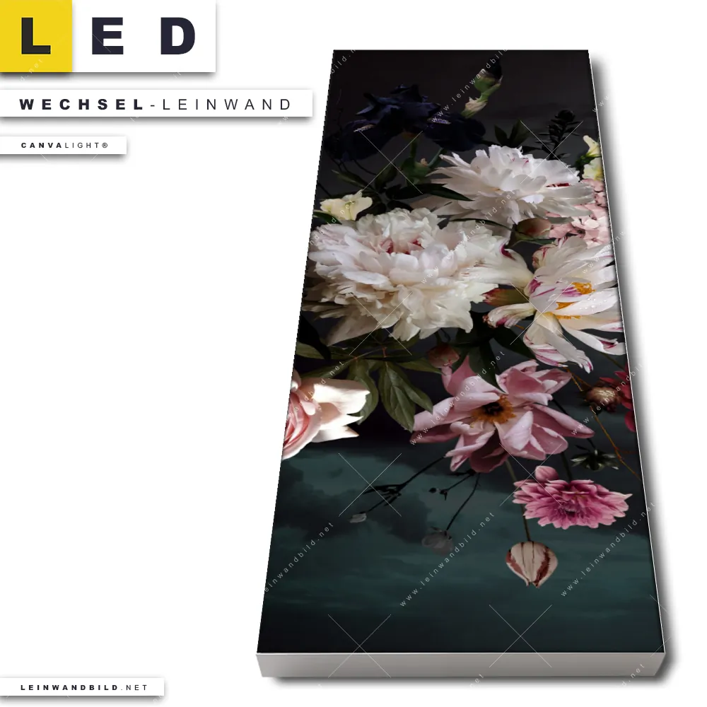 Du konfigurierst Deine individuelle LED Wechsel-Leinwand Canvalight® TEX | Weiße Pfingstrosen | Schmal und wir produzieren sie NEU für Dich. Unsere Blumen - Botanik Austausch-Fotoleinwände für Canvalight® LED Bilder sind KEINE Lagerware. Du bist Dir unsicher, welches Motiv oder Format das richtige für dein individuelles LED Wechselmotiv auf Leinwand ist, dann helfen wir dir gerne weiter und beraten dich!