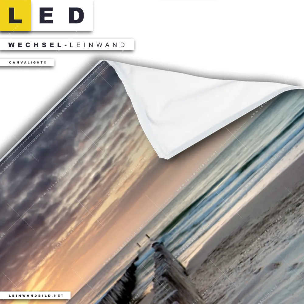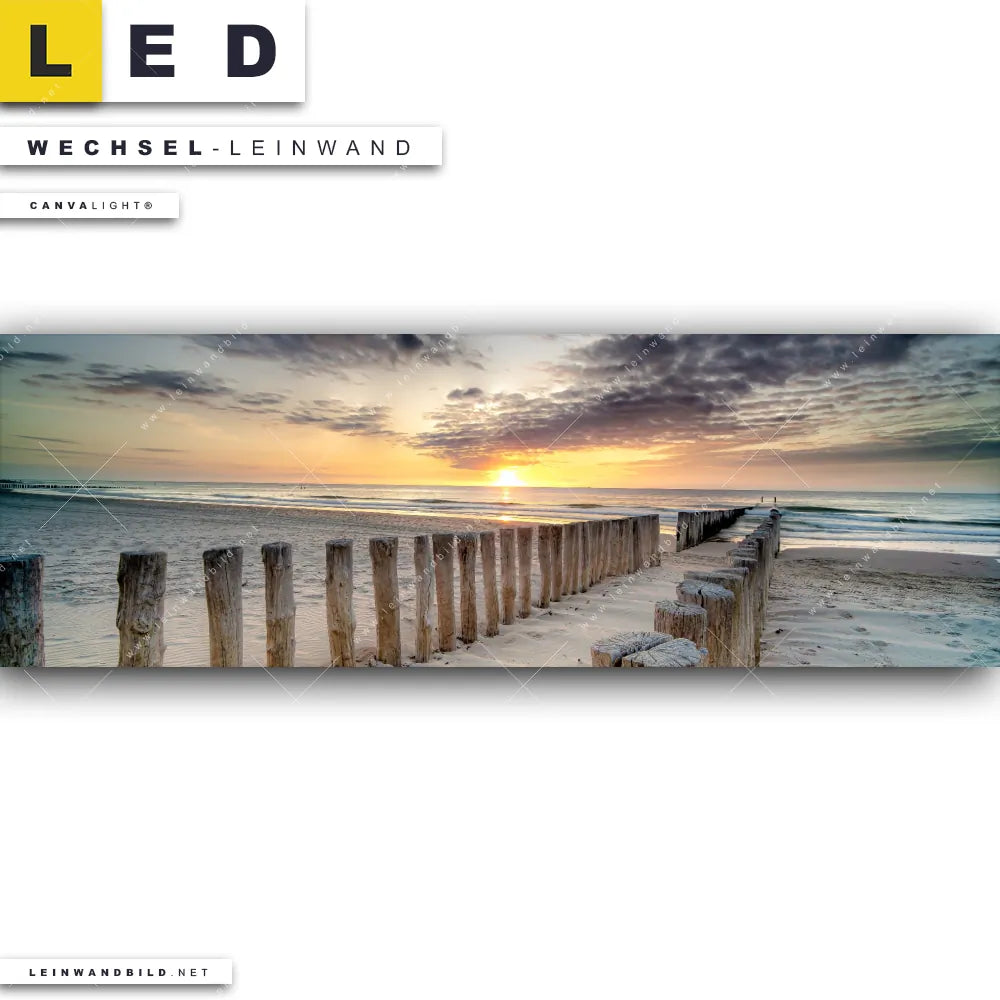LED Wechsel-Leinwand Canvalight® TEX | Wellenbrecher am Nordseestrand | Panorama