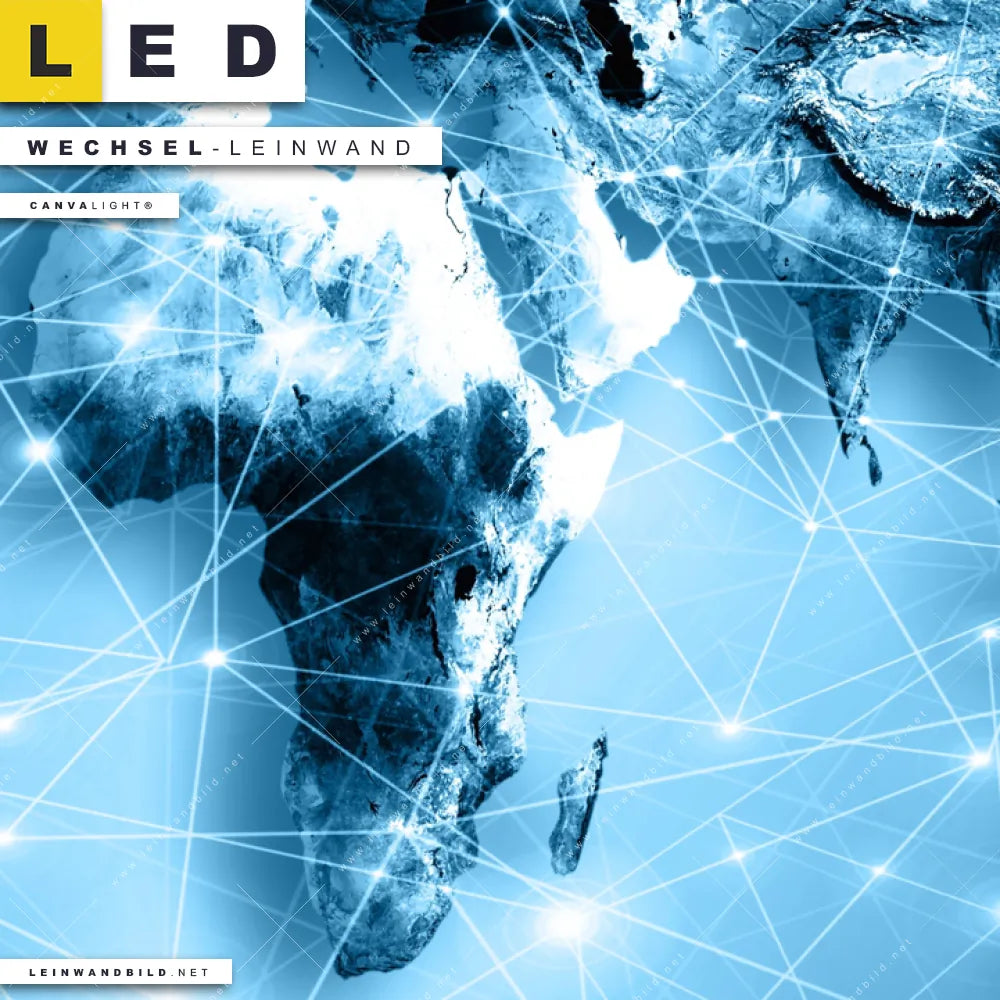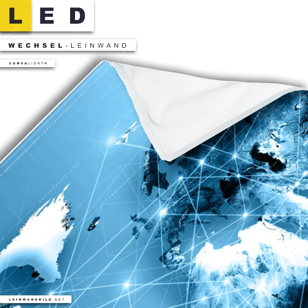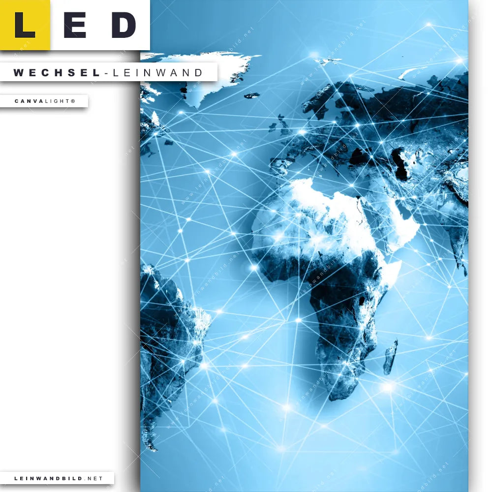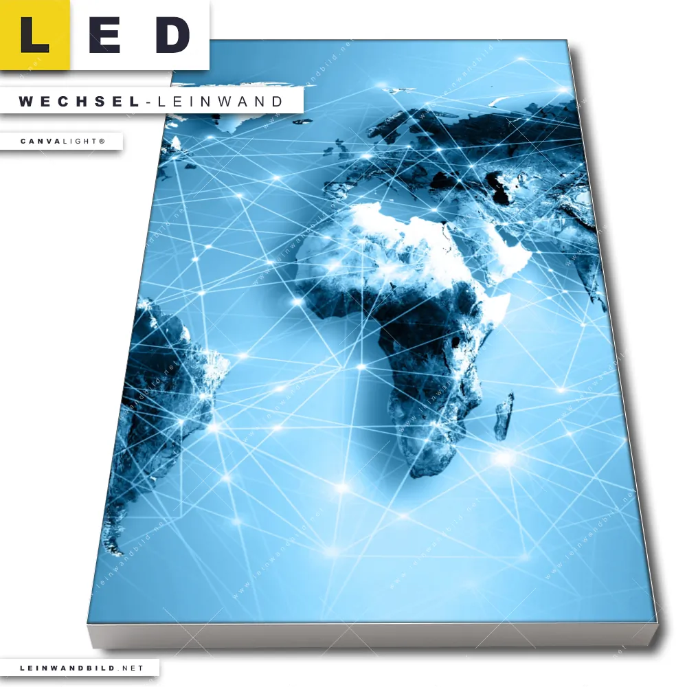 LED Wechsel-Leinwand Canvalight® TEX | Weltkarte Kommunikation | Hochformat