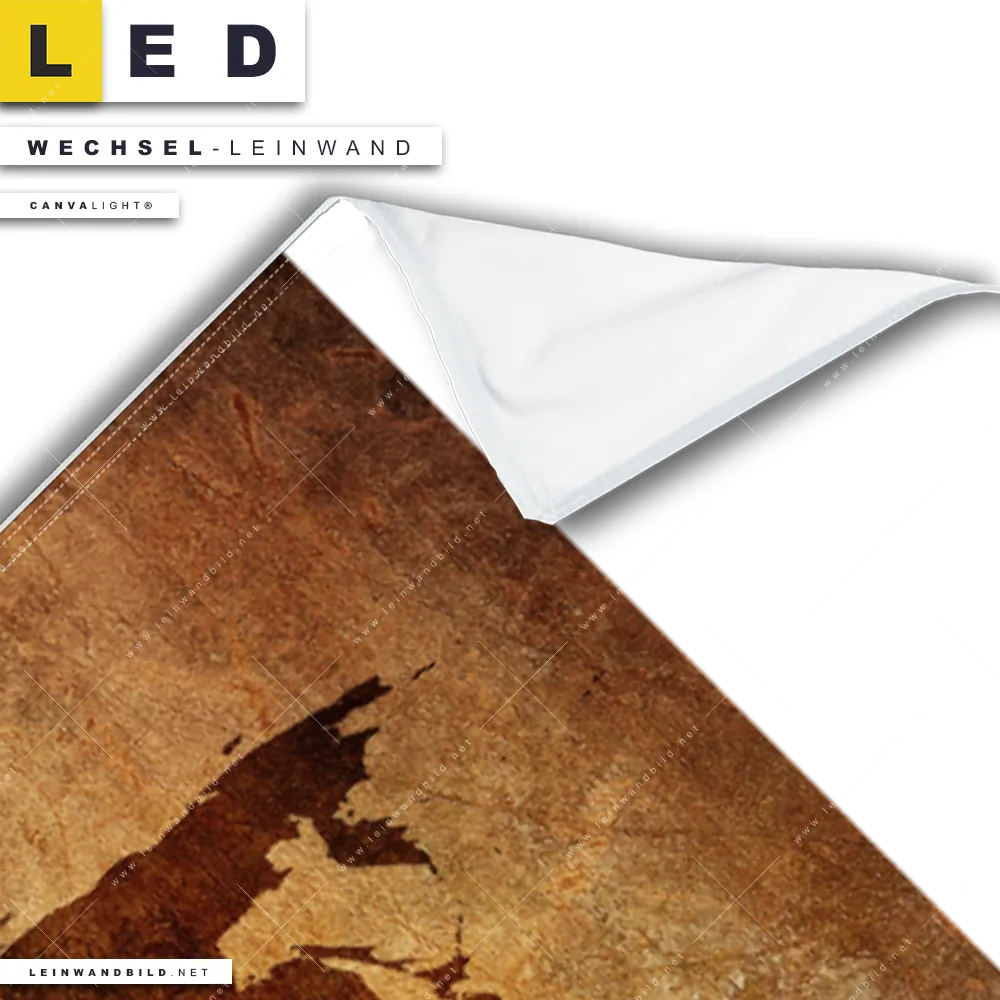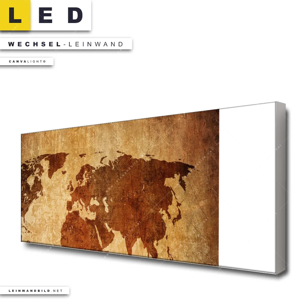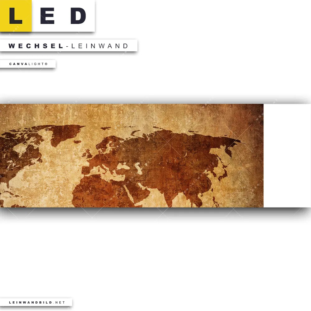 Du bist auf der Suche nach einer Karten Wechsel-Leinwand für Dein LED-Leinwandbild im Panorama-Format? Begriffe wie Weltkarte, Karte, Geografie, World, Map, Reisen, Kontinente, Urlaub, Welt haben Dich auf der Suche nach Deiner Ersatz-Leinwand für dein extra breites LED Wandbild mit wechselbarer Leinwand inspiriert? Farben wie Braun, Beige dürfen auf Deinem neuen Wechselmotiv für Dein XXL Leinwand-LED-Bild nicht fehlen und Leinwände im Retro - Vintage, Grunge Stil für Leuchtbilder passen perfekt zu Deinem Einrichtungsstil?