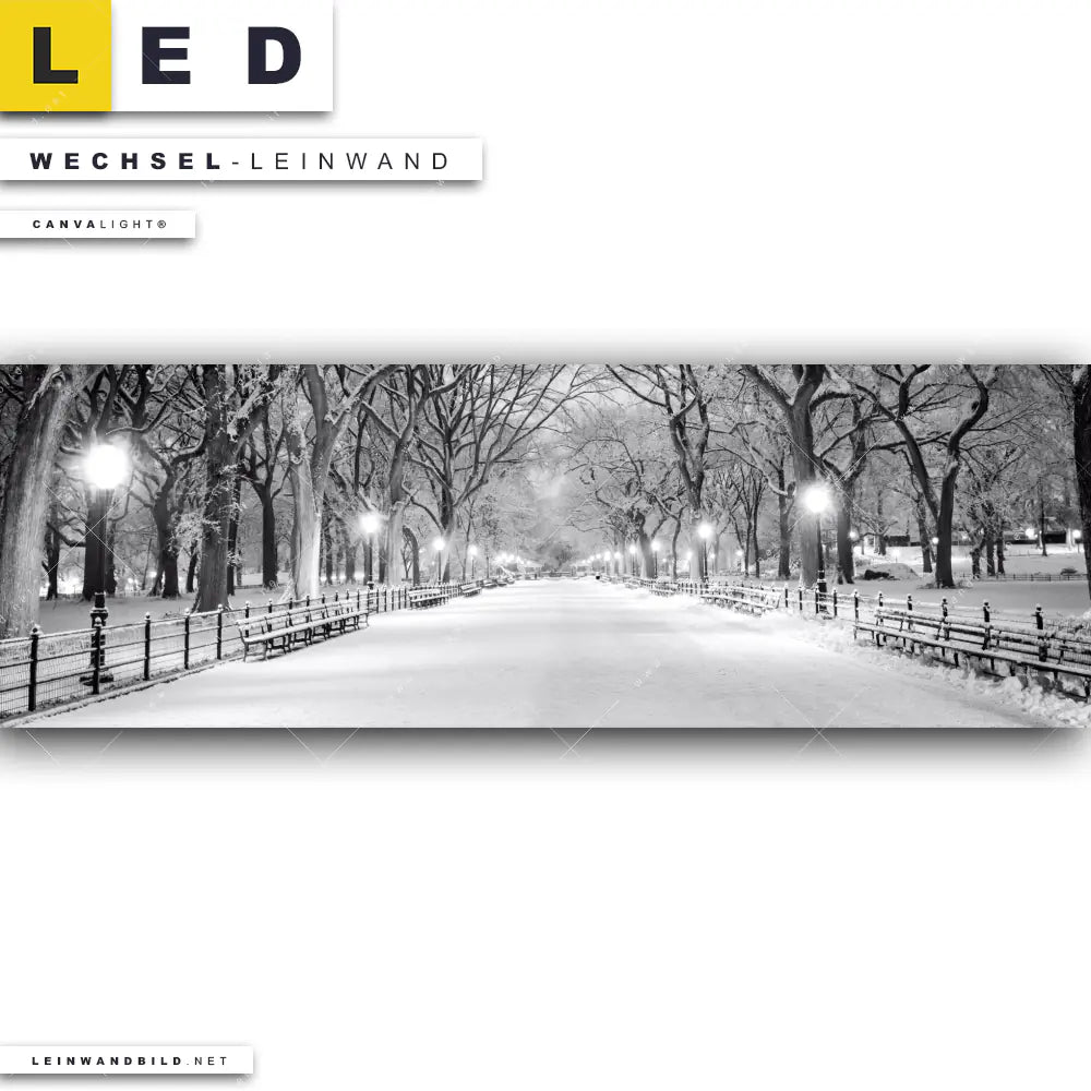 LED Wechsel-Leinwand Canvalight® TEX | Wintermorgen im Central Park | Panorama