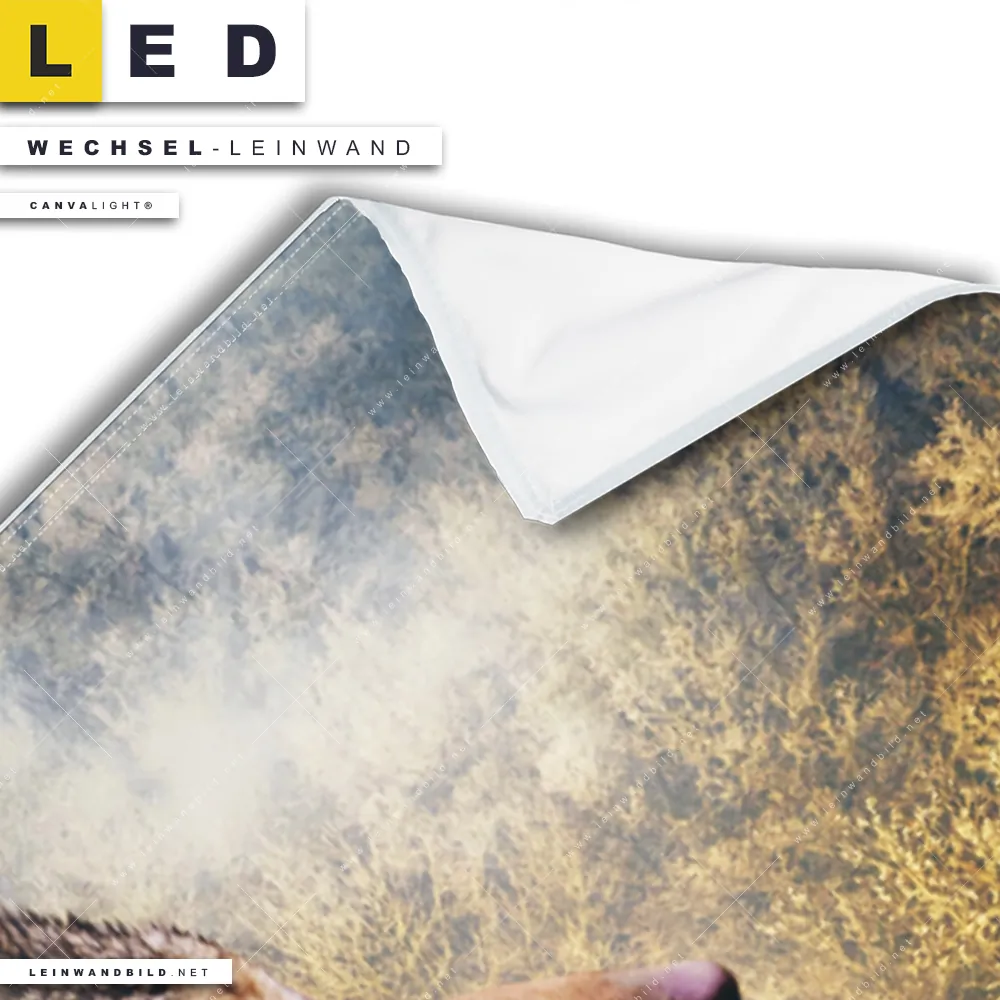 Du konfigurierst Deine individuelle LED Wechsel-Leinwand Canvalight® TEX | Wolf & Wald No.2 | Panorama und wir produzieren sie NEU für Dich. Unsere Tierwelt Austausch-Fotoleinwände für Canvalight® LED Bilder sind KEINE Lagerware. Du bist Dir unsicher, welches Motiv oder Format das richtige für dein individuelles LED Wechselmotiv auf Leinwand ist, dann helfen wir dir gerne weiter und beraten dich!