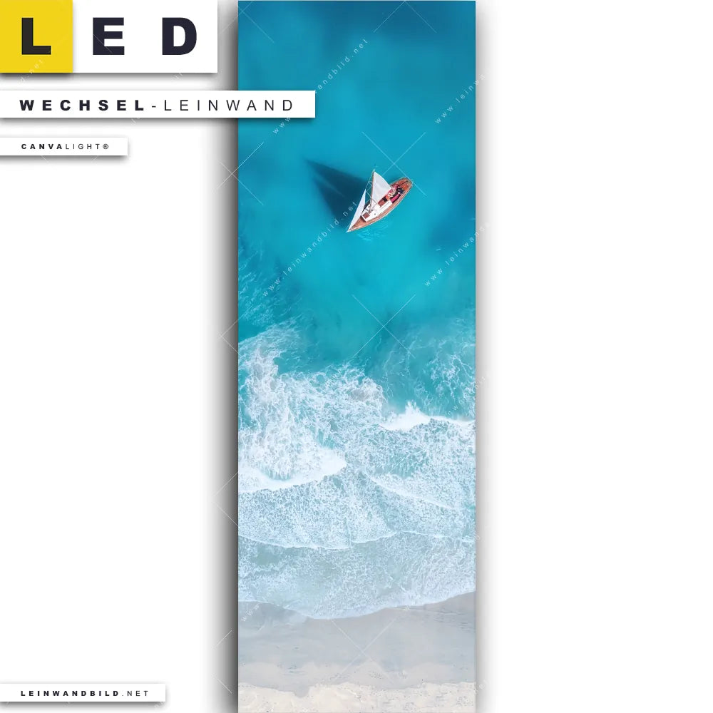 Du konfigurierst Deine individuelle LED Wechsel-Leinwand Canvalight® TEX | Yacht im Meer | Schmal und wir produzieren sie NEU für Dich. Unsere Strand - Meer Austausch-Fotoleinwände für Canvalight® LED Bilder sind KEINE Lagerware. Du bist Dir unsicher, welches Motiv oder Format das richtige für dein individuelles LED Wechselmotiv auf Leinwand ist, dann helfen wir dir gerne weiter und beraten dich!