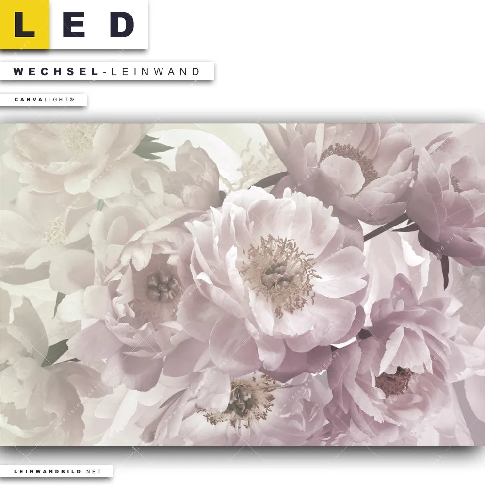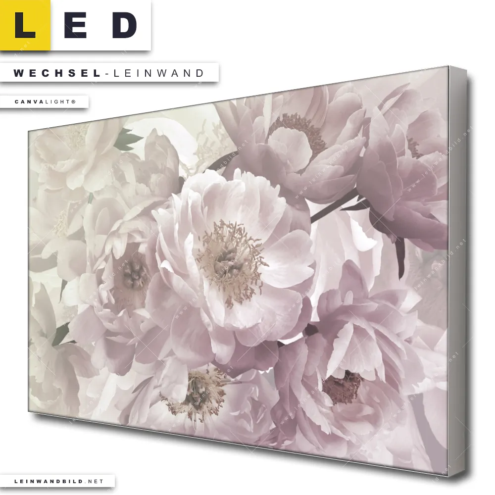 Du bist auf der Suche nach einer Blumen - Botanik Wechsel-Leinwand für Dein LED-Leinwandbild im Querformat? Begriffe wie Pflanze, Natur, Blüte, Nahaufnahme, Draufsicht, vintage, Blumen, pastell, Pfingstrosen, Pastellfarben haben Dich auf der Suche nach Deiner Ersatz-Leinwand für dein breites LED Wandbild mit wechselbarer Leinwand inspiriert? Farben wie Rosa, Weiss dürfen auf Deinem neuen Wechselmotiv für Dein XXL Leinwand-LED-Bild nicht fehlen und Leinwände im Floral, Natürlich - Realistisch, Retro - Vintage Stil für Leuchtbilder passen perfekt zu Deinem Einrichtungsstil?