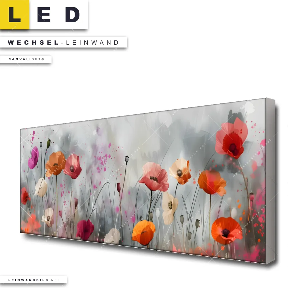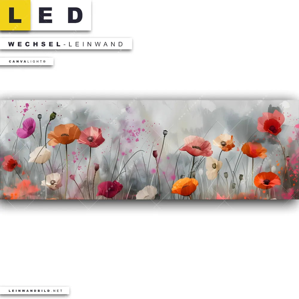Du bist auf der Suche nach einer Blumen - Botanik, Landschaften Wechsel-Leinwand für Dein LED-Leinwandbild im Panorama-Format? Begriffe wie Pflanze, Natur, Blüten, Mohnblumen, Blumenwiese, Frühling, Romantik haben Dich auf der Suche nach Deiner Ersatz-Leinwand für dein extra breites LED Wandbild mit wechselbarer Leinwand inspiriert? Farben wie Weiss, Grau , Orange, Rot dürfen auf Deinem neuen Wechselmotiv für Dein XXL Leinwand-LED-Bild nicht fehlen und Leinwände im Floral, Retro - Vintage, Abstrakt Stil für Leuchtbilder passen perfekt zu Deinem Einrichtungsstil?