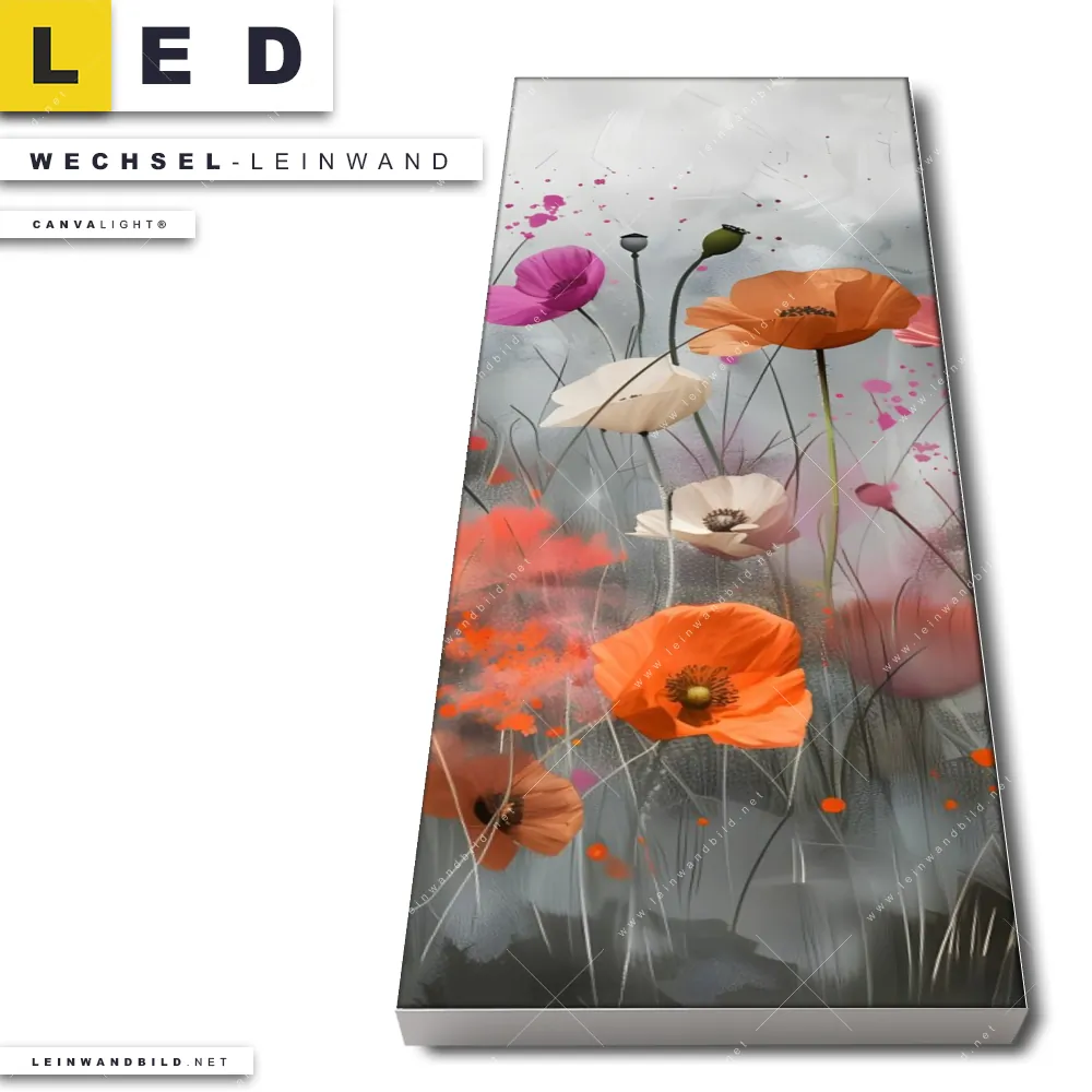 Du konfigurierst Deine individuelle LED Wechsel-Leinwand Canvalight® TEX | Zarte Mohnblumen im Wind | Schmal und wir produzieren sie NEU für Dich. Unsere Blumen - Botanik, Landschaften Austausch-Fotoleinwände für Canvalight® LED Bilder sind KEINE Lagerware. Du bist Dir unsicher, welches Motiv oder Format das richtige für dein individuelles LED Wechselmotiv auf Leinwand ist, dann helfen wir dir gerne weiter und beraten dich!