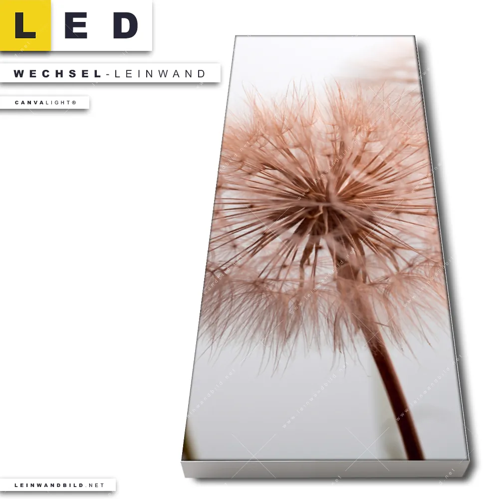 Du bist auf der Suche nach einer Blumen - Botanik Wechsel-Leinwand für Dein LED-Leinwandbild im Schmalen Format? Begriffe wie Blume, Botanik, Pflanze, Natur, Nahaufnahme, Pusteblume, Dandelion haben Dich auf der Suche nach Deiner Ersatz-Leinwand für dein LED Wandbild im Panorama-Hochformat mit wechselbarer Leinwand inspiriert? Farben wie Beige, Weiss, Rosa dürfen auf Deinem neuen Wechselmotiv für Dein XXL Leinwand-LED-Bild nicht fehlen und Leinwände im Minimalistisch, Retro - Vintage Stil für Leuchtbilder passen perfekt zu Deinem Einrichtungsstil?