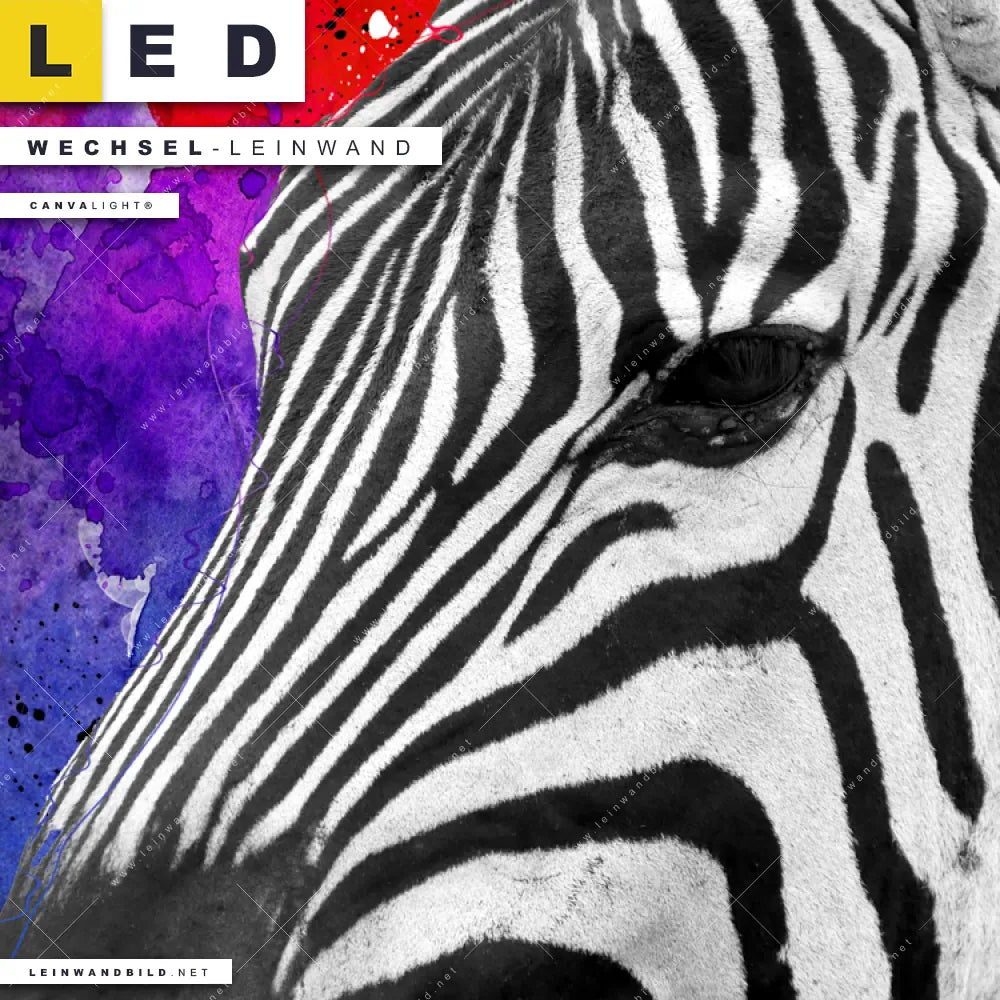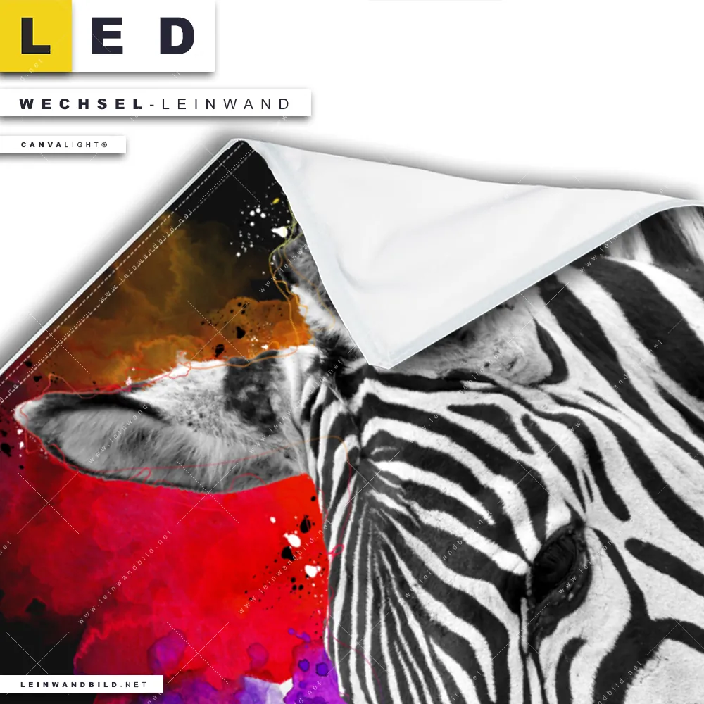 LED Wechsel-Leinwand Canvalight® TEX | Zebra Pop Art No.1 | Hochformat