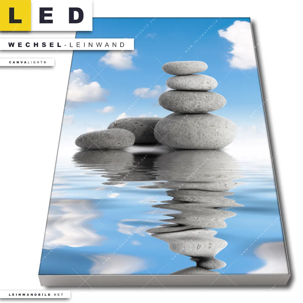 Du konfigurierst Deine individuelle LED Wechsel-Leinwand Canvalight® TEX | Zen Spa Steine | Hochformat und wir produzieren sie NEU für Dich. Unsere Buddha - Feng Shui Austausch-Fotoleinwände für Canvalight® LED Bilder sind KEINE Lagerware. Du bist Dir unsicher, welches Motiv oder Format das richtige für dein individuelles LED Wechselmotiv auf Leinwand ist, dann helfen wir dir gerne weiter und beraten dich!