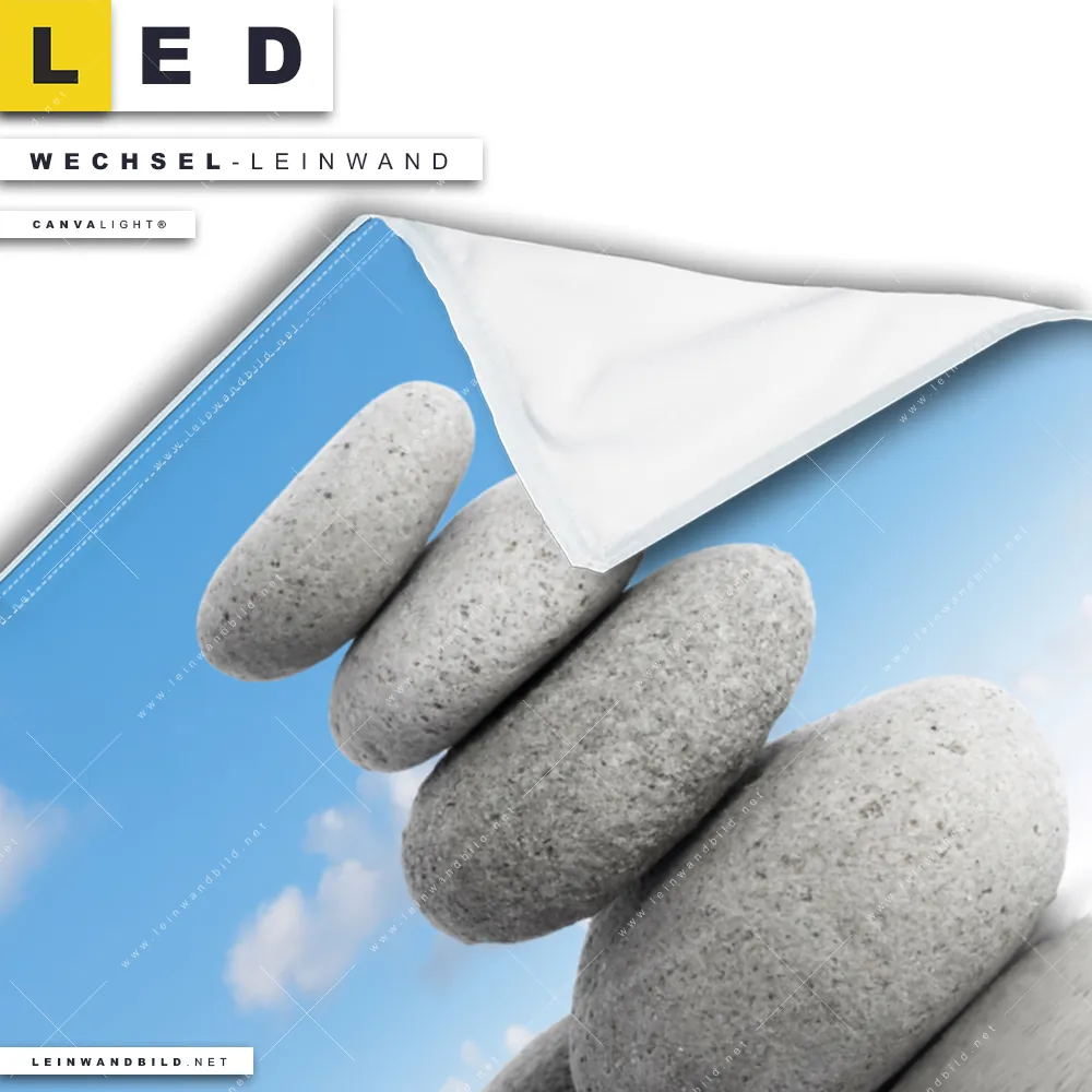Du konfigurierst Deine individuelle LED Wechsel-Leinwand Canvalight® TEX | Zen Spa Steine | Querformat und wir produzieren sie NEU für Dich. Unsere Buddha - Feng Shui Austausch-Fotoleinwände für Canvalight® LED Bilder sind KEINE Lagerware. Du bist Dir unsicher, welches Motiv oder Format das richtige für dein individuelles LED Wechselmotiv auf Leinwand ist, dann helfen wir dir gerne weiter und beraten dich!