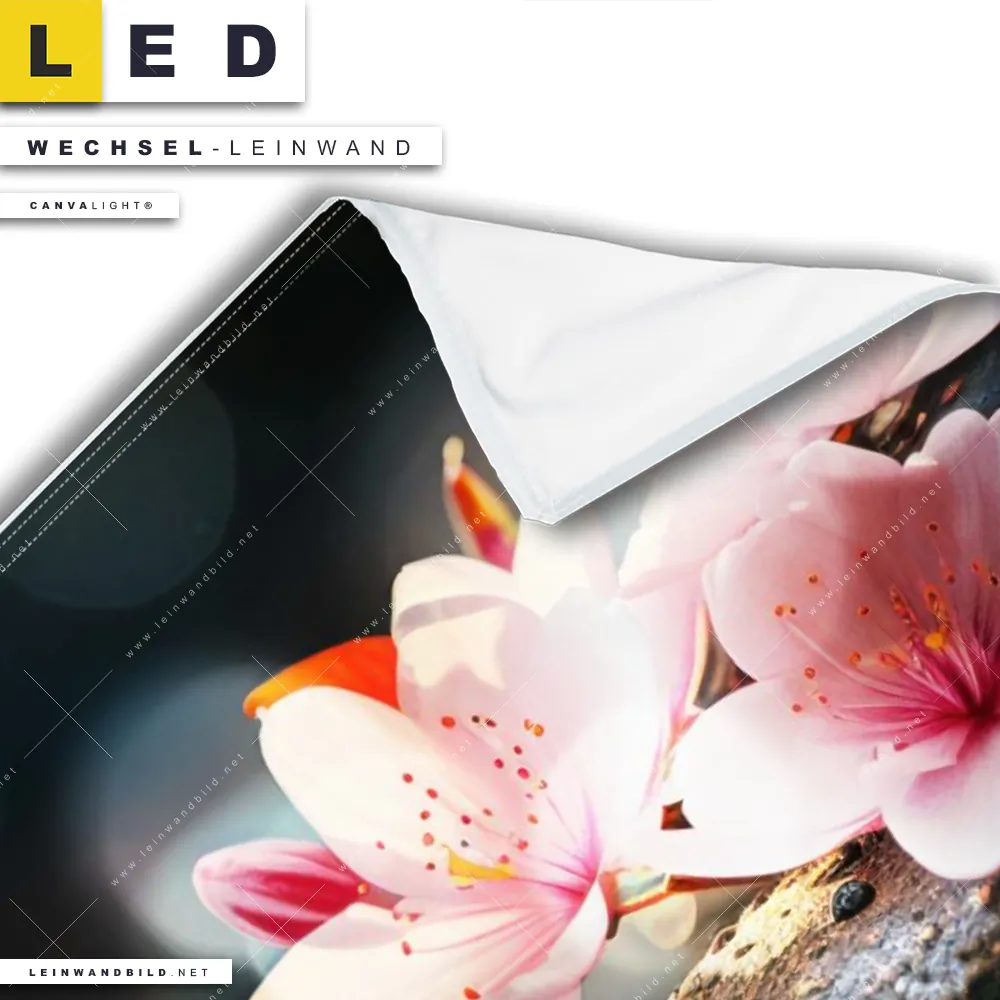 Du bist auf der Suche nach einer Blumen - Botanik, Buddha - Feng Shui Wechsel-Leinwand für Dein LED-Leinwandbild im Hochformat? Begriffe wie Steine, Basalt, Blüten, Wassertropfen, Blätter, Kirschblüten, Spa, Wellness haben Dich auf der Suche nach Deiner Ersatz-Leinwand für dein LED Wandbild mit wechselbarer Leinwand inspiriert? Farben wie Schwarz, Rosa, Orange dürfen auf Deinem neuen Wechselmotiv für Dein XXL Leinwand-LED-Bild nicht fehlen und Leinwände im Floral, Modern Art Stil für Leuchtbilder passen perfekt zu Deinem Einrichtungsstil?