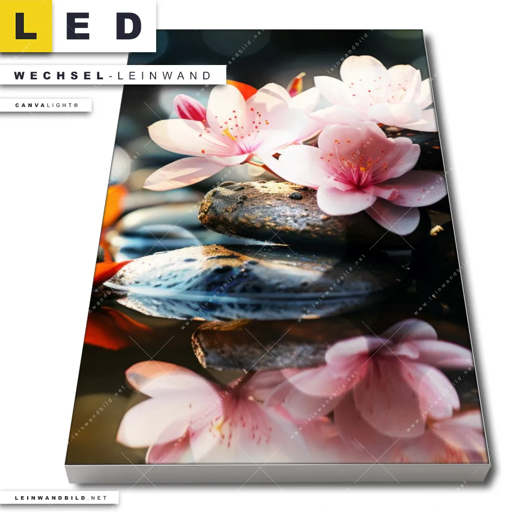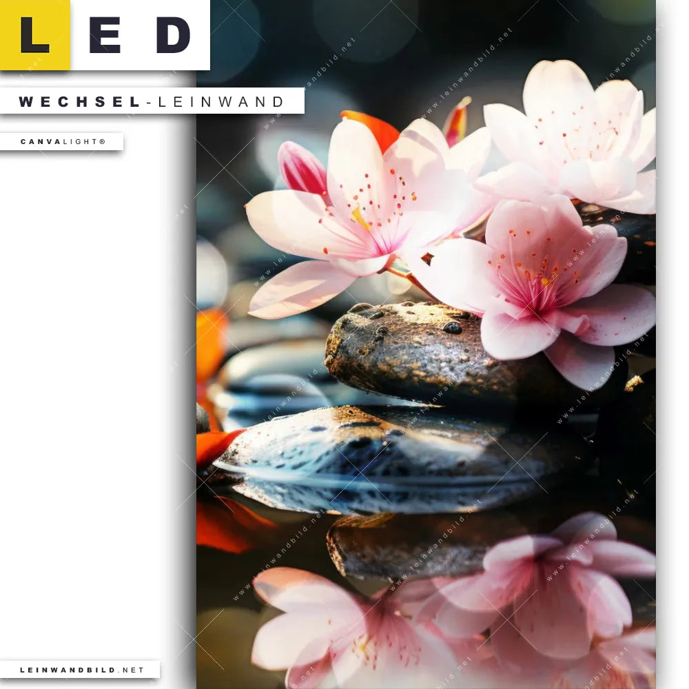 LED Wechsel-Leinwand Canvalight® TEX | Zen Steine mit Blumen | Hochformat