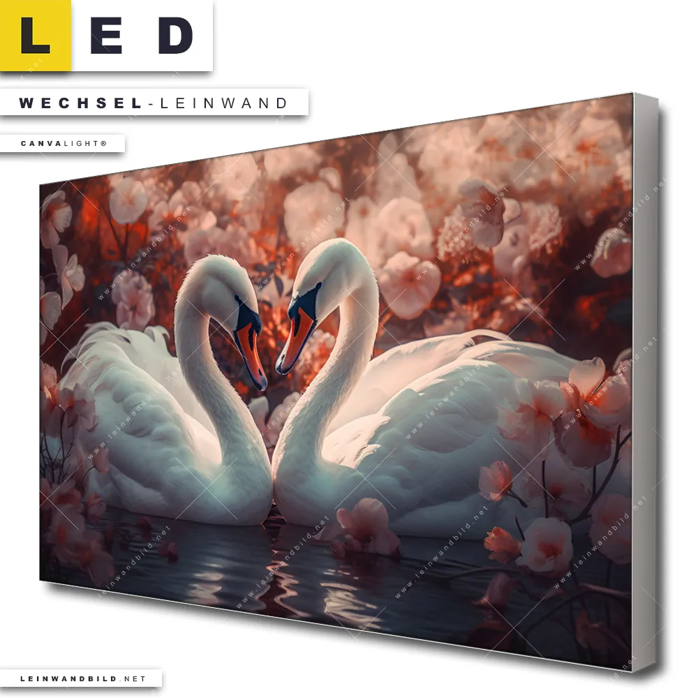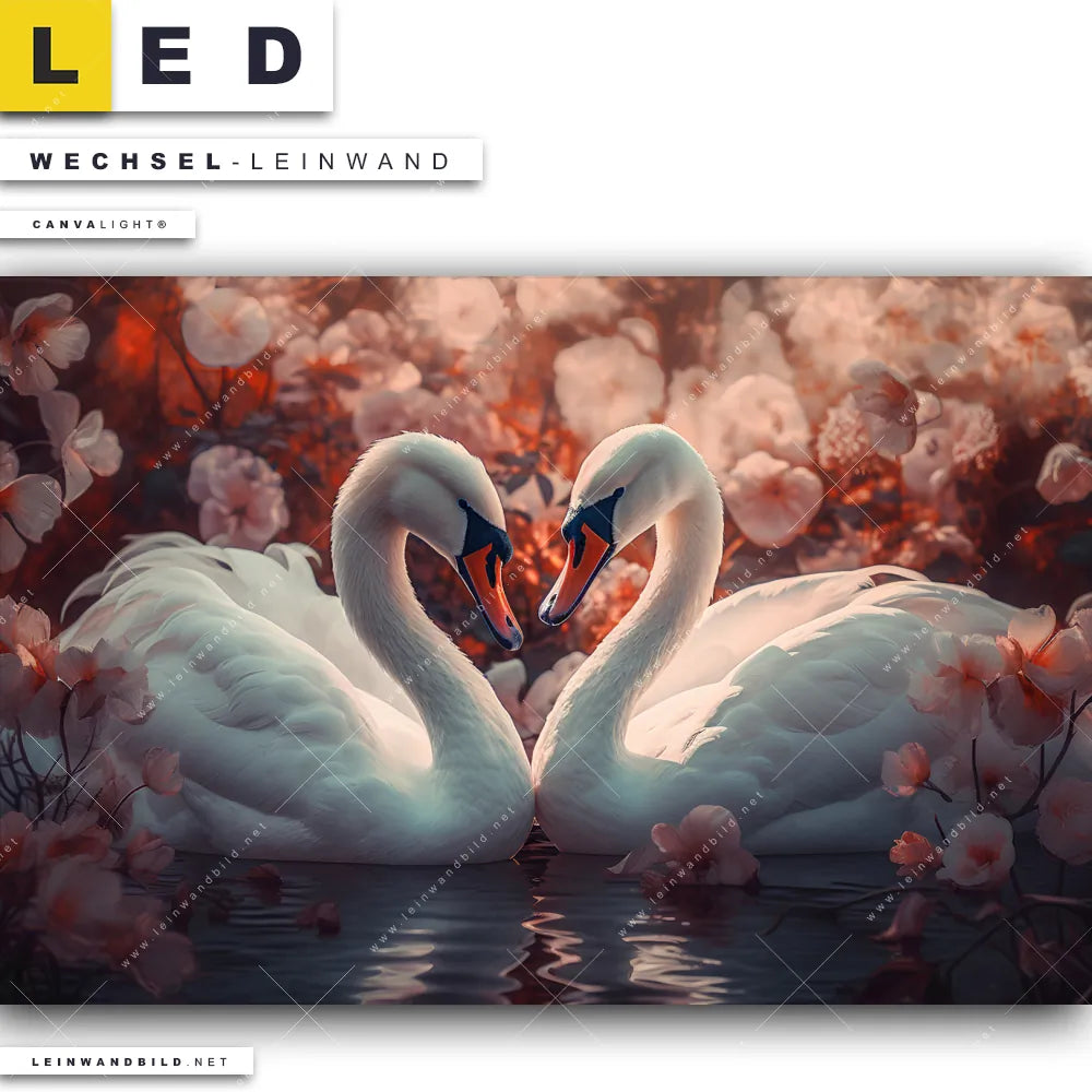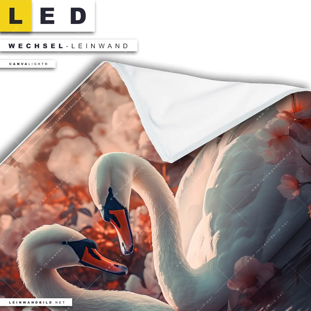 LED Wechsel-Leinwand Canvalight® TEX | Zwei Schwäne im Wasser | Querformat