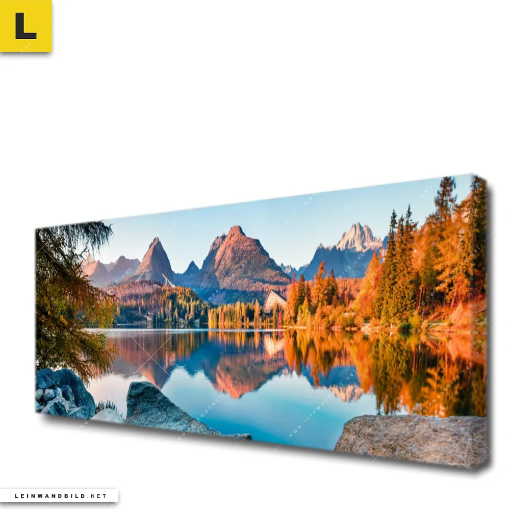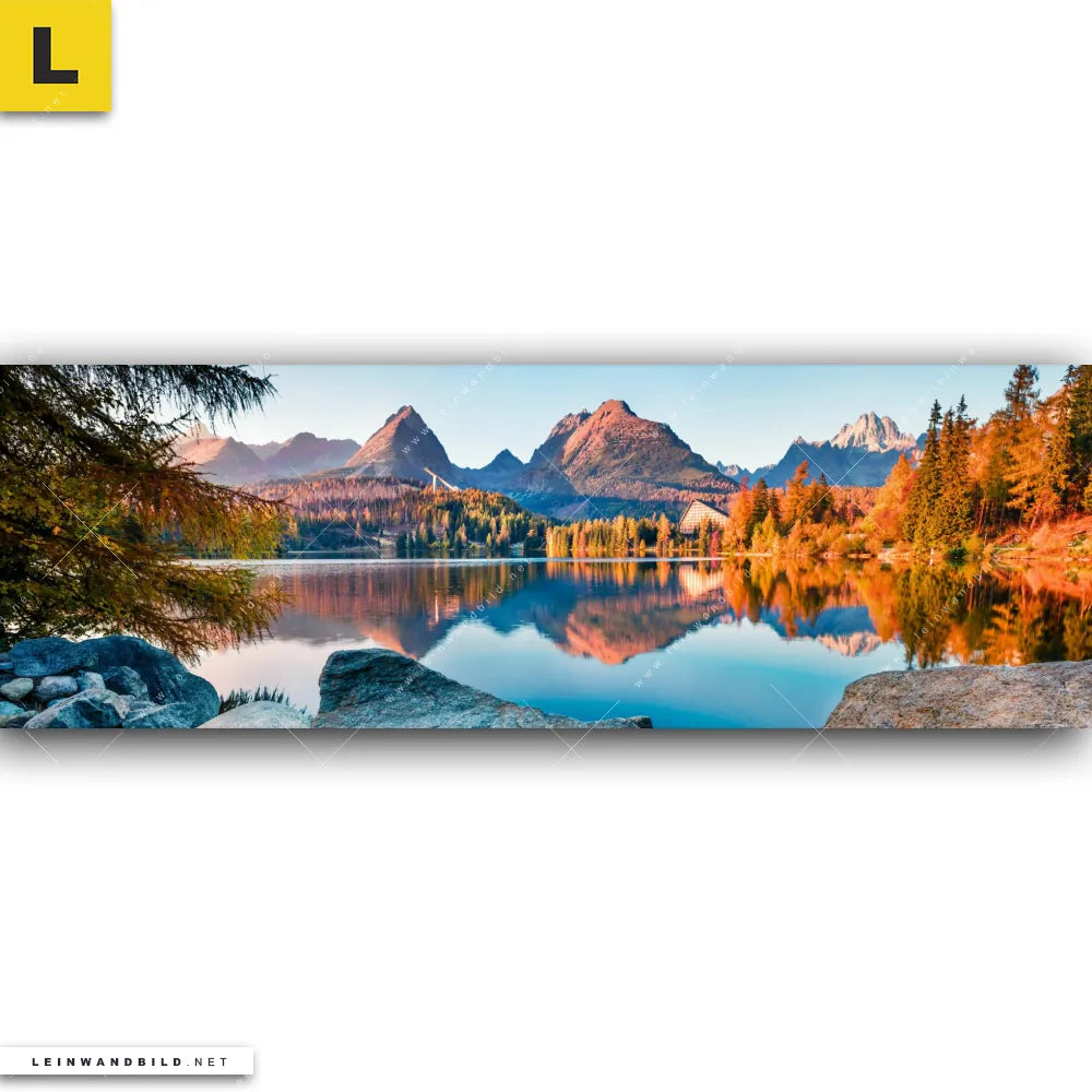 Du konfigurierst Dein individuelles Leinwandbild | Abendszene mit Bergen und See | Panorama und wir produzieren es NEU für Dich. Unsere Landschaften Leinwände sind KEINE Lagerware. Du bist Dir unsicher, welches Motiv oder Format das richtige für dein individuelles Keilrahmenbild ist, dann helfen wir dir gerne weiter und beraten dich!