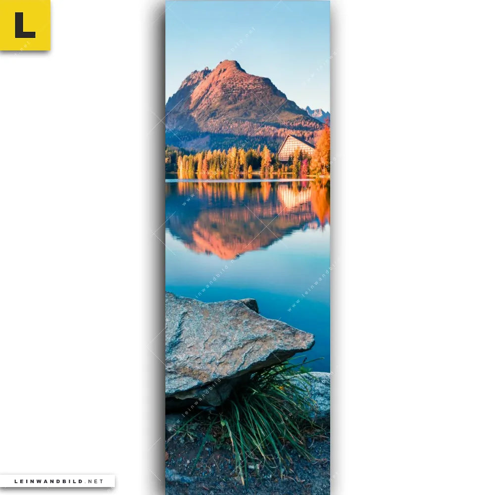 Du konfigurierst Dein individuelles Leinwandbild | Abendszene mit Bergen und See | Schmal und wir produzieren es NEU für Dich. Unsere Landschaften Leinwände sind KEINE Lagerware. Du bist Dir unsicher, welches Motiv oder Format das richtige für dein individuelles Keilrahmenbild ist, dann helfen wir dir gerne weiter und beraten dich!