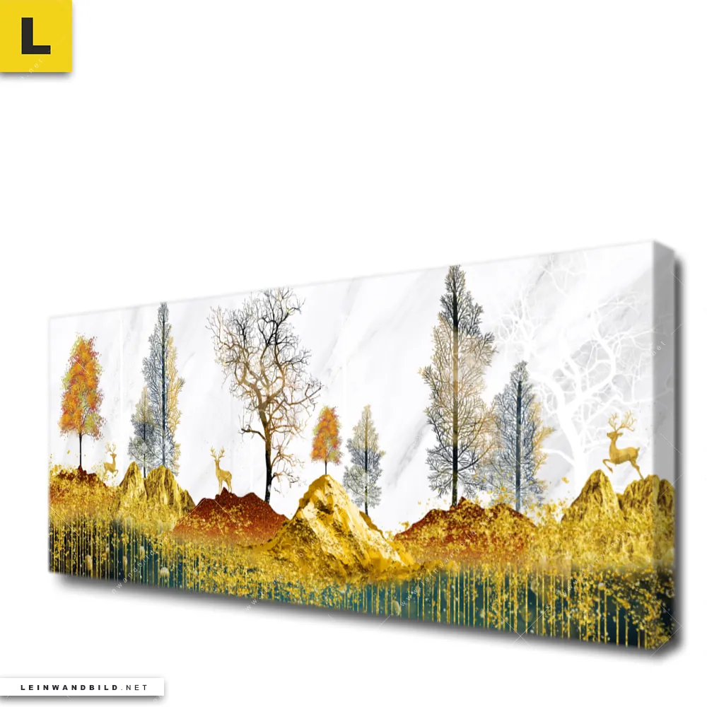 Bitte beachte, dass die Farben, der auf dem Monitor abgebildeten Hirsche in Gold im Wald Darstellung, möglicherweise von den Originalfarben abweichen können.