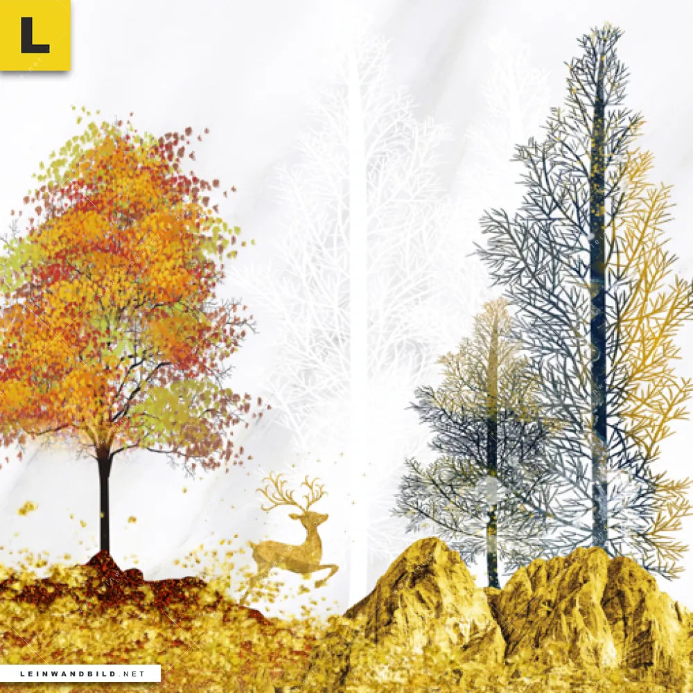 Bitte beachte, dass die Farben, der auf dem Monitor abgebildeten Hirsche in Gold im Wald Darstellung, möglicherweise von den Originalfarben abweichen können.