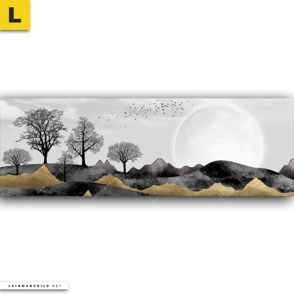 Bitte beachte, dass die Farben, der auf dem Monitor abgebildeten Berglandschaft in schwarz-gold Darstellung, möglicherweise von den Originalfarben abweichen können.