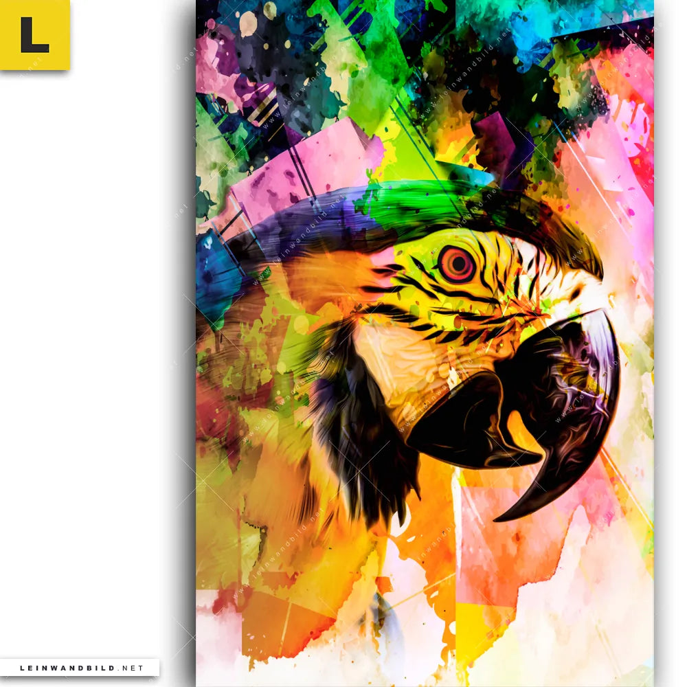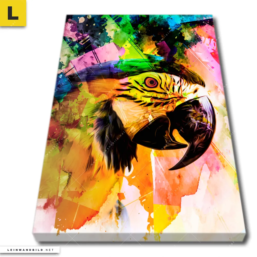 Du konfigurierst Dein individuelles Leinwandbild | Abstrakter Papagei | Hochformat und wir produzieren es NEU für Dich. Unsere Tierwelt Leinwände sind KEINE Lagerware. Du bist Dir unsicher, welches Motiv oder Format das richtige für dein individuelles Keilrahmenbild ist, dann helfen wir dir gerne weiter und beraten dich!