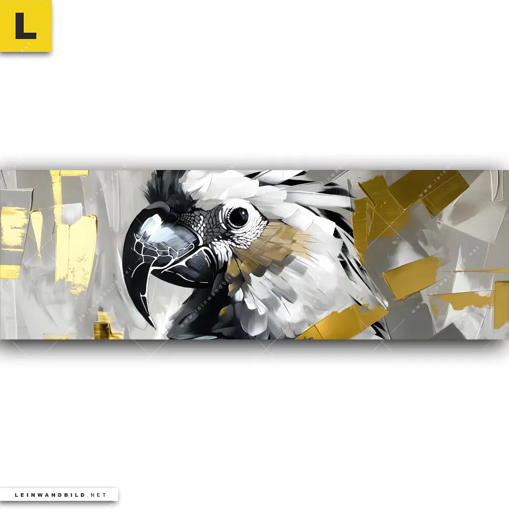 Du konfigurierst Dein individuelles Leinwandbild | Abstrakter Papagei mit Gold | Panorama und wir produzieren es NEU für Dich. Unsere Tierwelt Leinwände sind KEINE Lagerware. Du bist Dir unsicher, welches Motiv oder Format das richtige für dein individuelles Keilrahmenbild ist, dann helfen wir dir gerne weiter und beraten dich!
