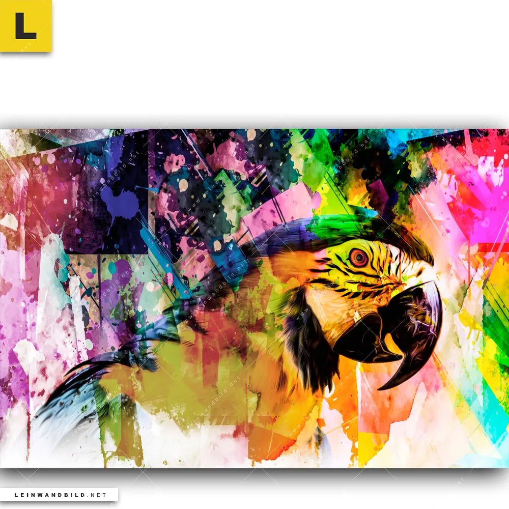Du konfigurierst Dein individuelles Leinwandbild | Abstrakter Papagei | Querformat und wir produzieren es NEU für Dich. Unsere Tierwelt Leinwände sind KEINE Lagerware. Du bist Dir unsicher, welches Motiv oder Format das richtige für dein individuelles Keilrahmenbild ist, dann helfen wir dir gerne weiter und beraten dich!