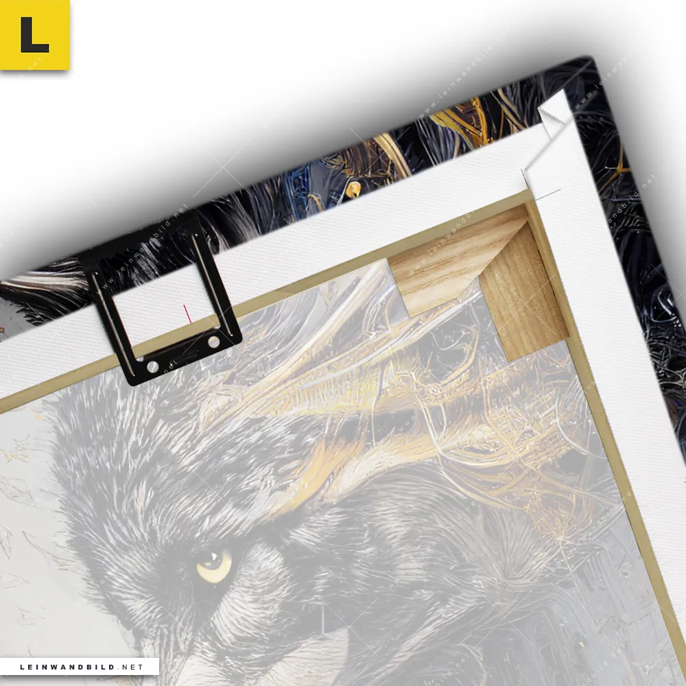 Du konfigurierst Dein individuelles Leinwandbild | Abstrakter Wolf in Gold und Grau | Quadrat und wir produzieren es NEU für Dich. Unsere Tierwelt Leinwände sind KEINE Lagerware. Du bist Dir unsicher, welches Motiv oder Format das richtige für dein individuelles Keilrahmenbild ist, dann helfen wir dir gerne weiter und beraten dich!
