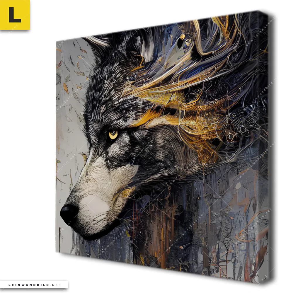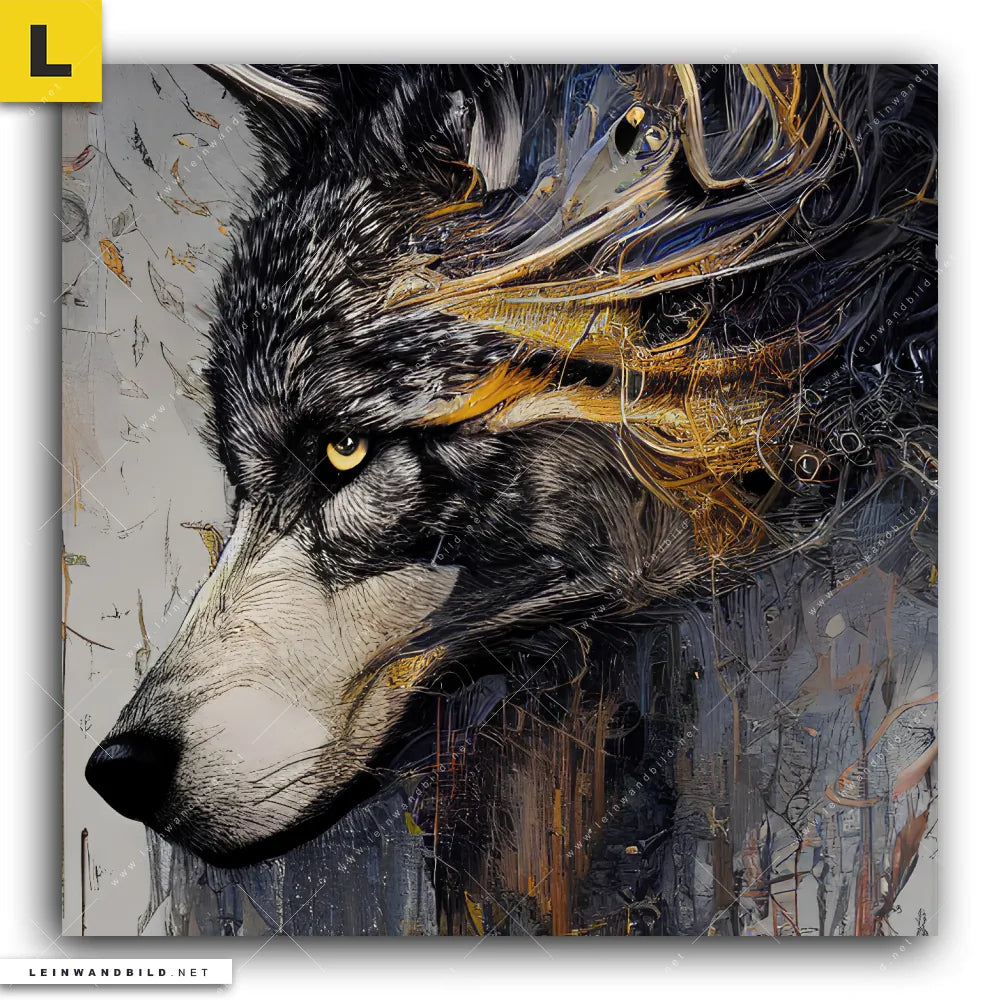 Leinwandbild | Abstrakter Wolf in Gold und Grau | Quadrat