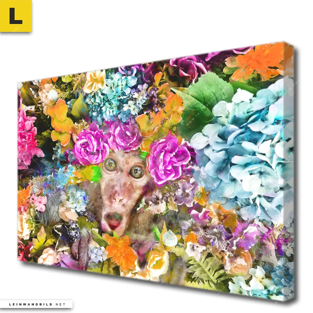 Du konfigurierst Dein individuelles Leinwandbild | Äffchen & Blumen | Querformat und wir produzieren es NEU für Dich. Unsere Tierwelt, Blumen - Botanik Leinwände sind KEINE Lagerware. Du bist Dir unsicher, welches Motiv oder Format das richtige für dein individuelles Keilrahmenbild ist, dann helfen wir dir gerne weiter und beraten dich!