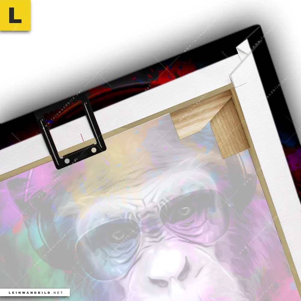 Begriffe wie Tier, Affe, Monkey, Brille, Sonnenbrille, cool, Chimpanzee, Schimpanse, Kopfhörer, Musik haben Dich auf der Suche nach Deinem neuen Wandbild auf Leinwand inspiriert? Dann sollte das Leinwandbild Affe liebt Musik den Weg zu Dir finden.