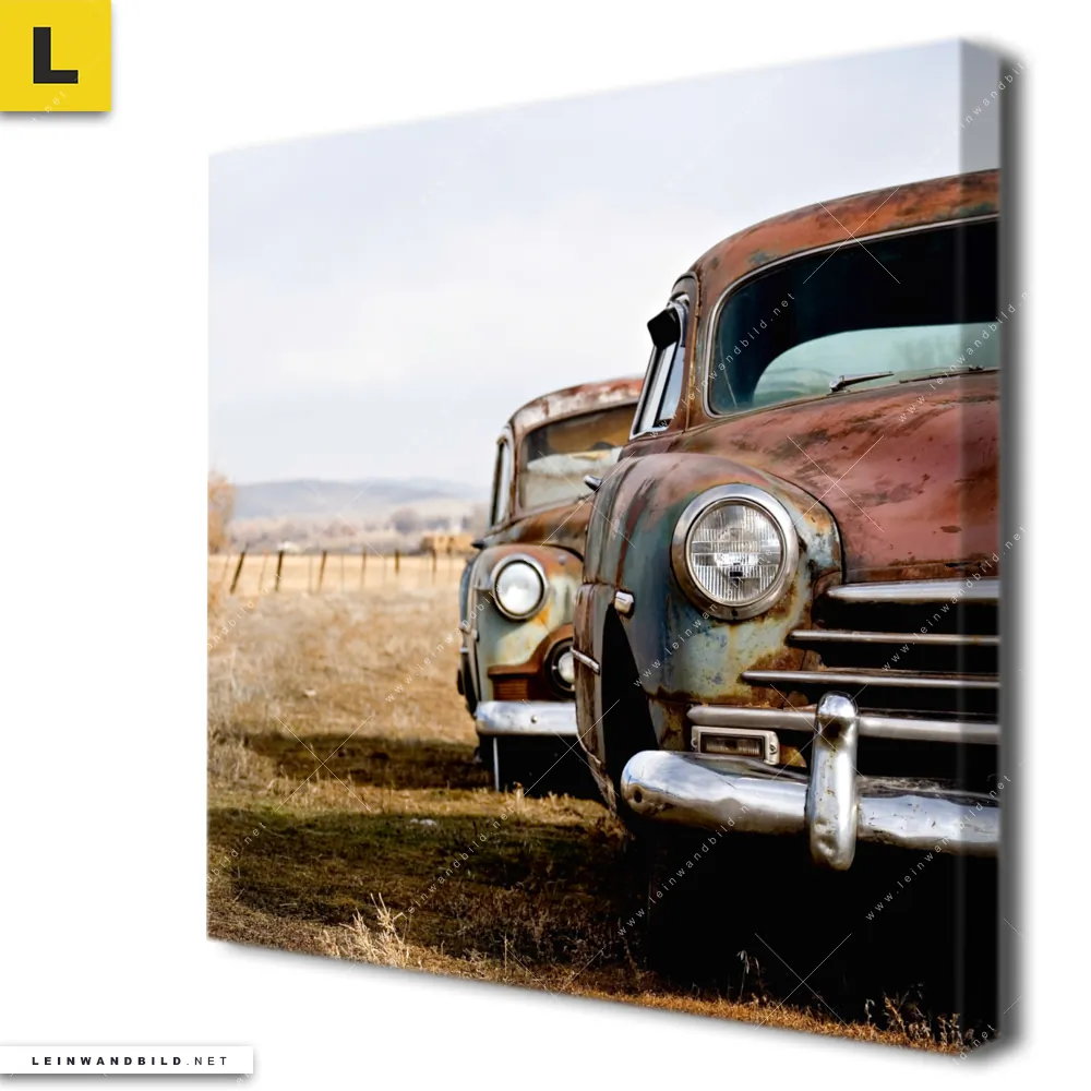 Du konfigurierst Dein individuelles Leinwandbild | Alte rostige Autos | Quadrat und wir produzieren es NEU für Dich. Unsere Fahrzeuge Leinwände sind KEINE Lagerware. Du bist Dir unsicher, welches Motiv oder Format das richtige für dein individuelles Keilrahmenbild ist, dann helfen wir dir gerne weiter und beraten dich!