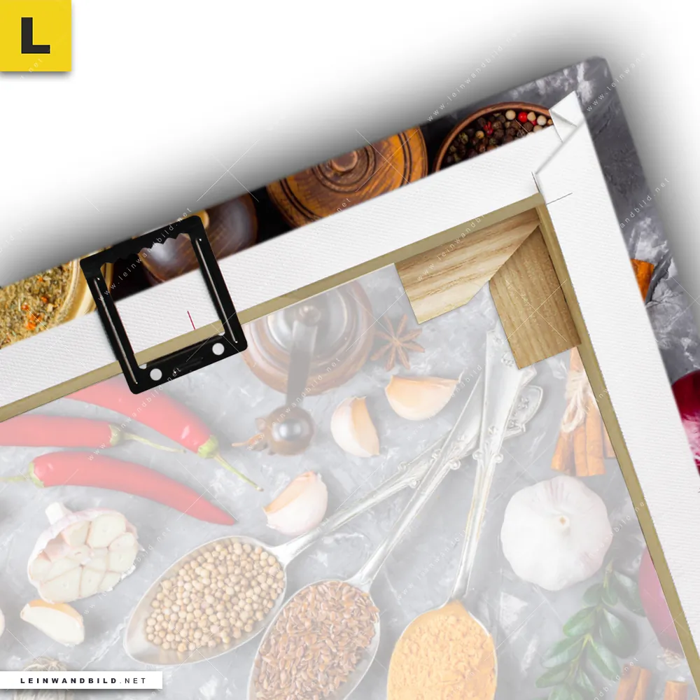 Du konfigurierst Dein individuelles Leinwandbild | Aromatische Gewürze | Querformat und wir produzieren es NEU für Dich. Unsere Essen - Trinken Leinwände sind KEINE Lagerware. Du bist Dir unsicher, welches Motiv oder Format das richtige für dein individuelles Keilrahmenbild ist, dann helfen wir dir gerne weiter und beraten dich!