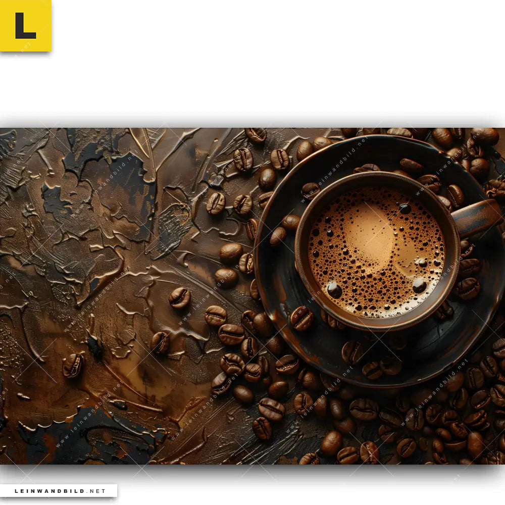Du konfigurierst Dein individuelles Leinwandbild | Aromatischer Kaffeetraum | Querformat und wir produzieren es NEU für Dich. Unsere Essen - Trinken Leinwände sind KEINE Lagerware. Du bist Dir unsicher, welches Motiv oder Format das richtige für dein individuelles Keilrahmenbild ist, dann helfen wir dir gerne weiter und beraten dich!