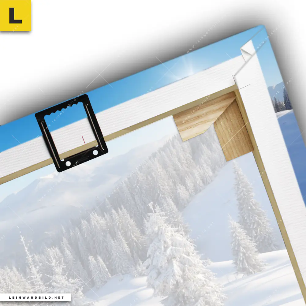 Du konfigurierst Dein individuelles Leinwandbild | Berge und Wälder in Schnee | Querformat und wir produzieren es NEU für Dich. Unsere Landschaften, Winter Leinwände sind KEINE Lagerware. Du bist Dir unsicher, welches Motiv oder Format das richtige für dein individuelles Keilrahmenbild ist, dann helfen wir dir gerne weiter und beraten dich!