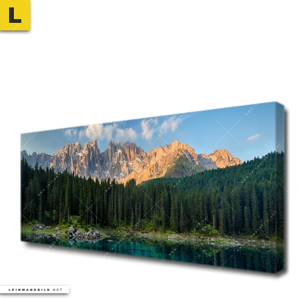 Du konfigurierst Dein individuelles Leinwandbild | Bergsee im Wald | Panorama und wir produzieren es NEU für Dich. Unsere Landschaften Leinwände sind KEINE Lagerware. Du bist Dir unsicher, welches Motiv oder Format das richtige für dein individuelles Keilrahmenbild ist, dann helfen wir dir gerne weiter und beraten dich!