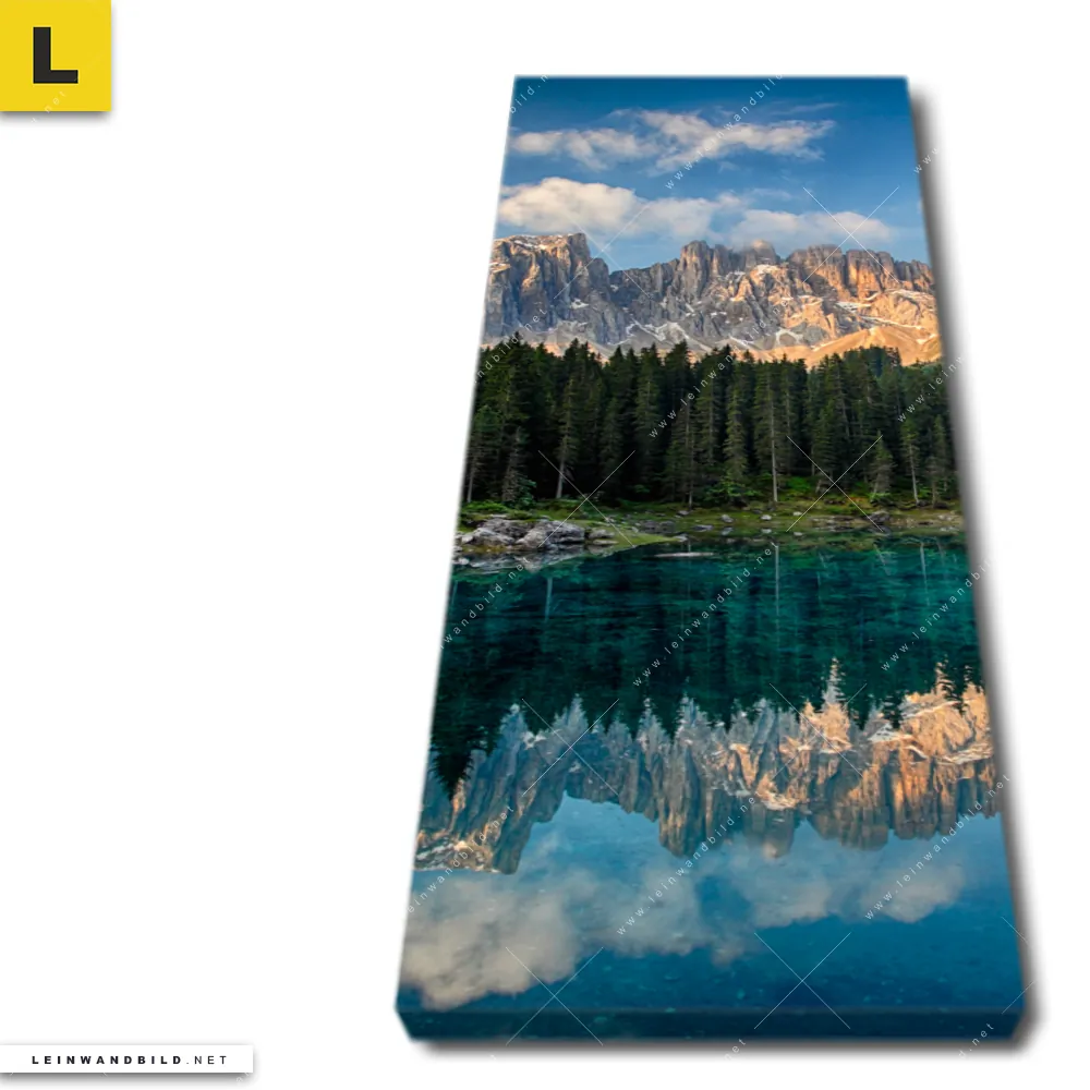 Du konfigurierst Dein individuelles Leinwandbild | Bergsee im Wald | Schmal und wir produzieren es NEU für Dich. Unsere Landschaften Leinwände sind KEINE Lagerware. Du bist Dir unsicher, welches Motiv oder Format das richtige für dein individuelles Keilrahmenbild ist, dann helfen wir dir gerne weiter und beraten dich!