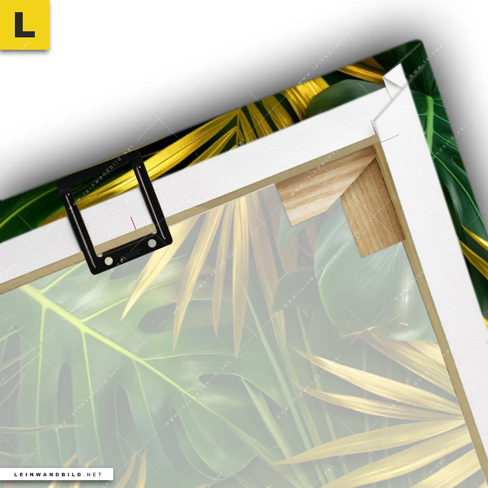 Du konfigurierst Dein individuelles Leinwandbild | Blätter Gold Grün | Hochformat und wir produzieren es NEU für Dich. Unsere Blumen - Botanik, Muster - Texturen Leinwände sind KEINE Lagerware. Du bist Dir unsicher, welches Motiv oder Format das richtige für dein individuelles Keilrahmenbild ist, dann helfen wir dir gerne weiter und beraten dich!