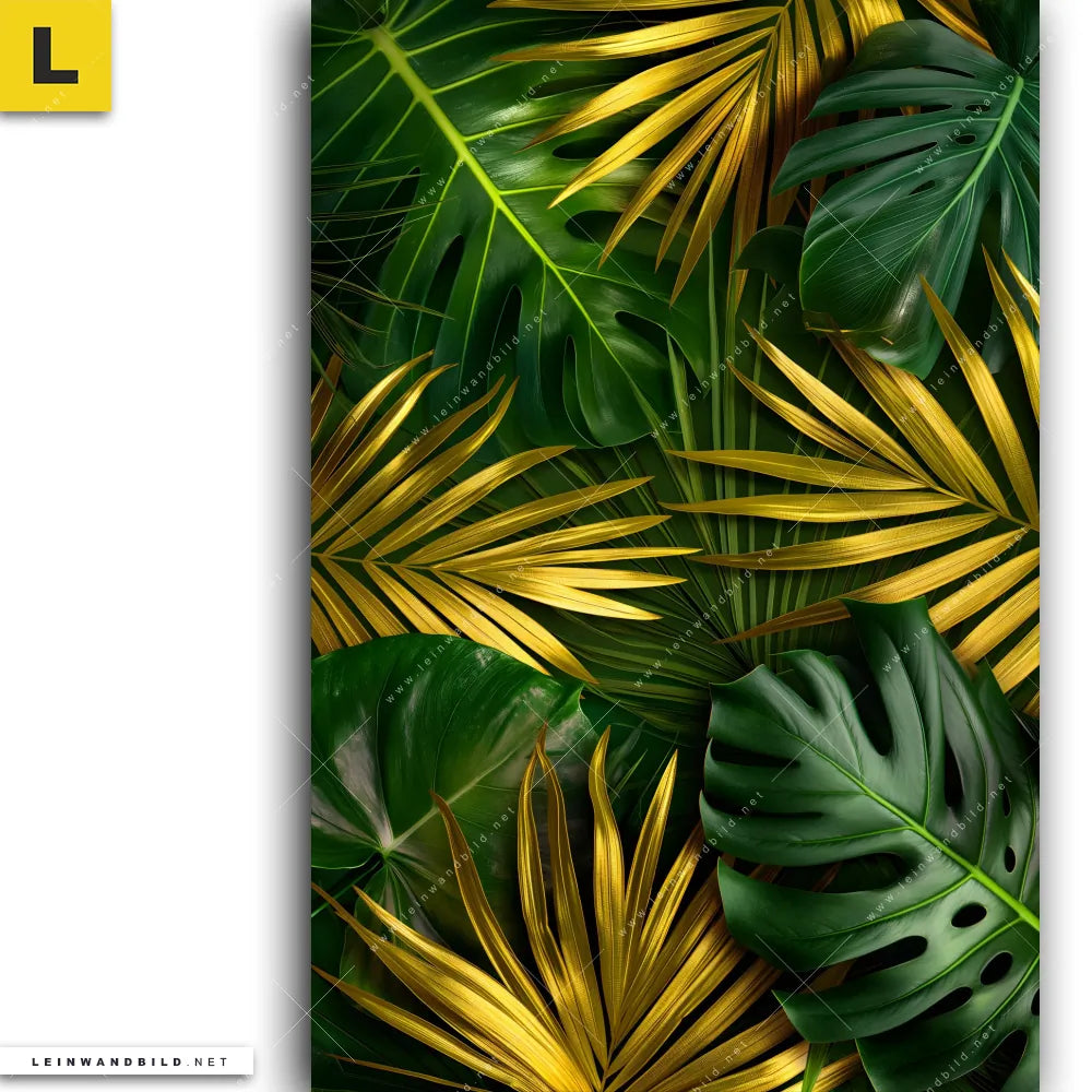 Leinwandbild | Blätter Gold Grün | Hochformat