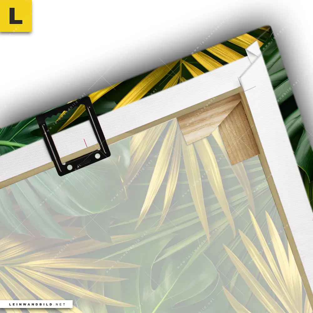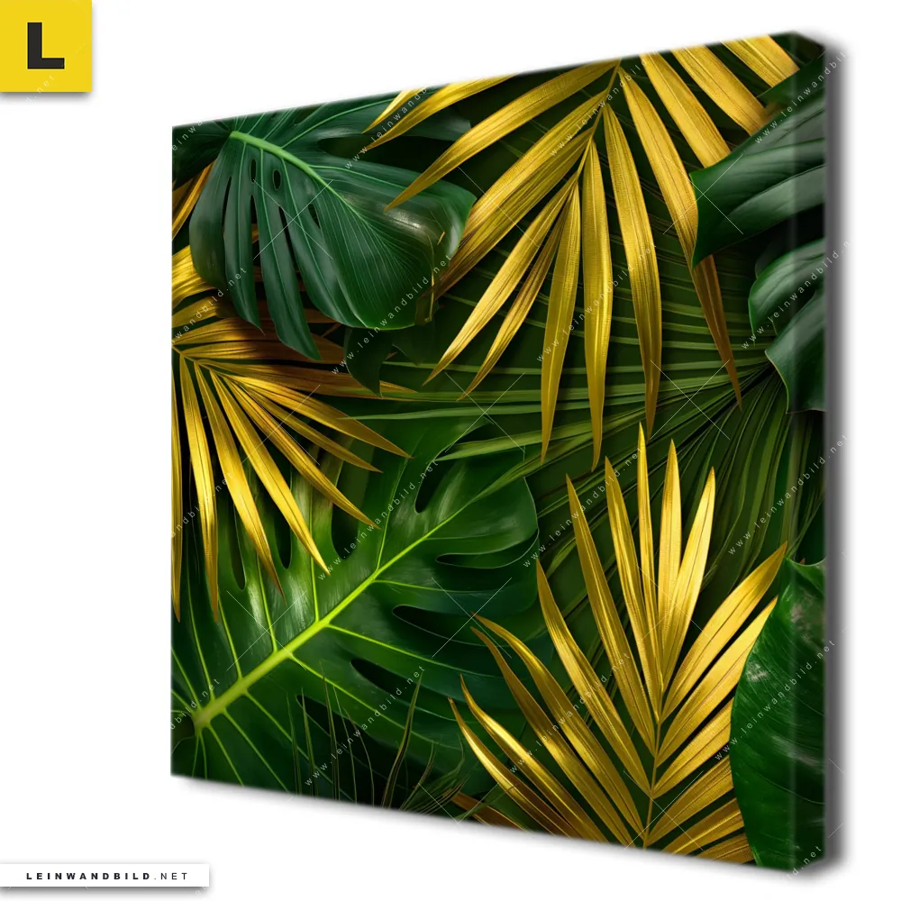 Du konfigurierst Dein individuelles Leinwandbild | Blätter Gold Grün | Quadrat und wir produzieren es NEU für Dich. Unsere Blumen - Botanik, Muster - Texturen Leinwände sind KEINE Lagerware. Du bist Dir unsicher, welches Motiv oder Format das richtige für dein individuelles Keilrahmenbild ist, dann helfen wir dir gerne weiter und beraten dich!