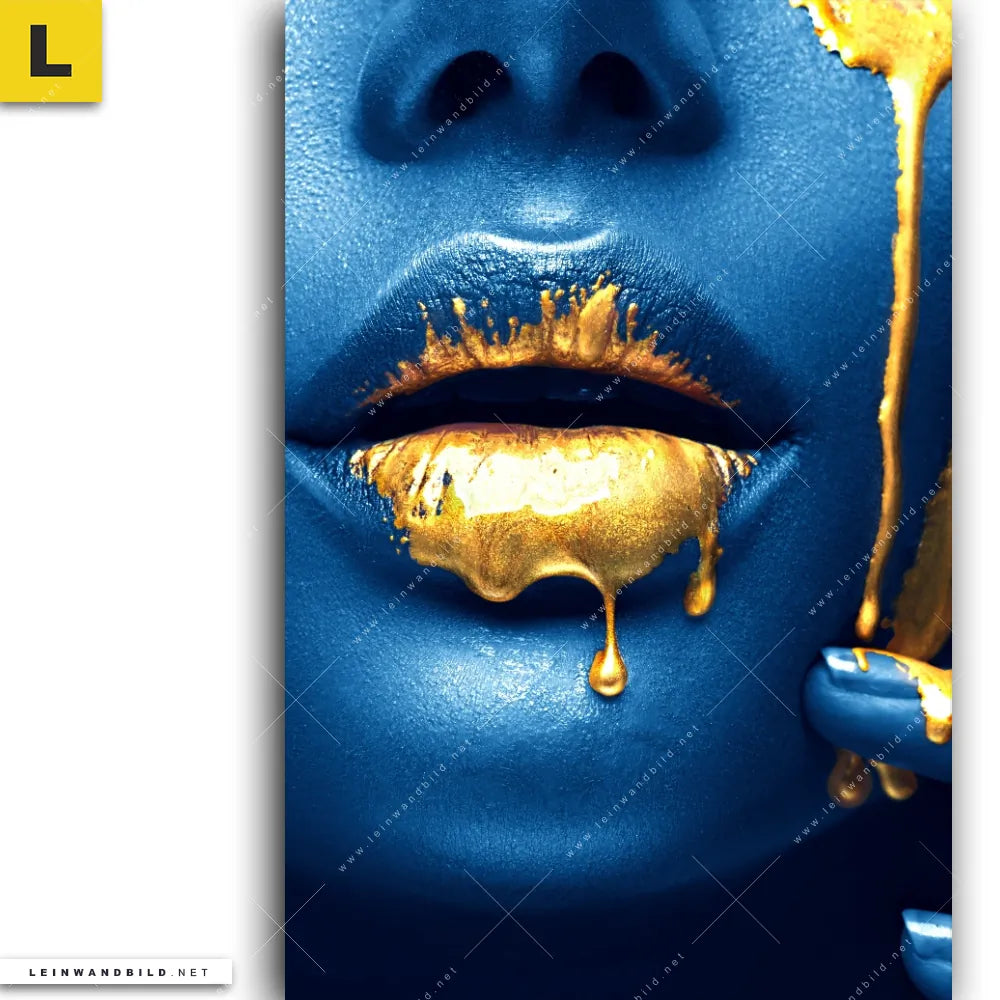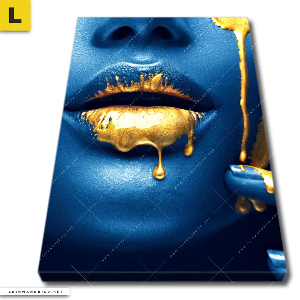 Bitte beachte, dass die Farben, der auf dem Monitor abgebildeten Porträt in Blau mit Goldakzenten Darstellung, möglicherweise von den Originalfarben abweichen können.