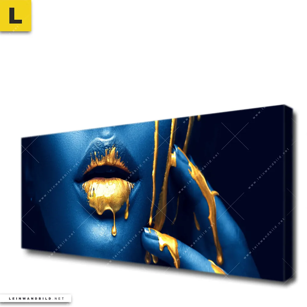 Bitte beachte, dass die Farben, der auf dem Monitor abgebildeten Porträt in Blau mit Goldakzenten Darstellung, möglicherweise von den Originalfarben abweichen können.
